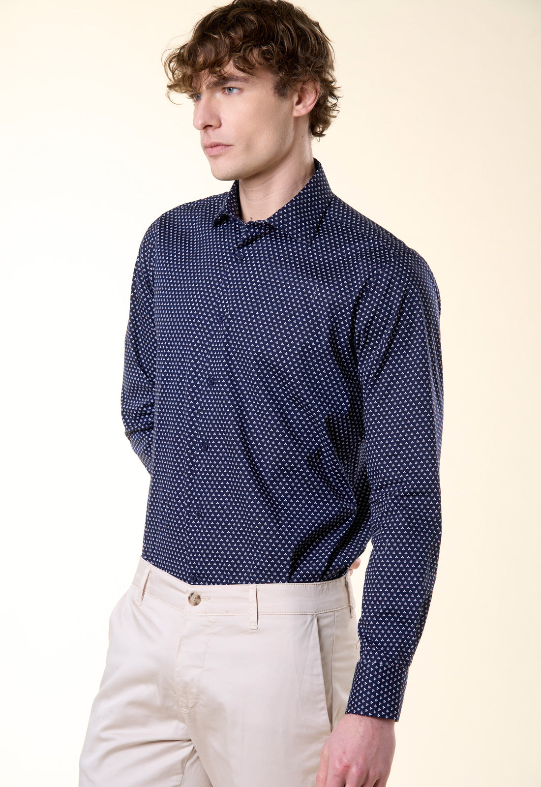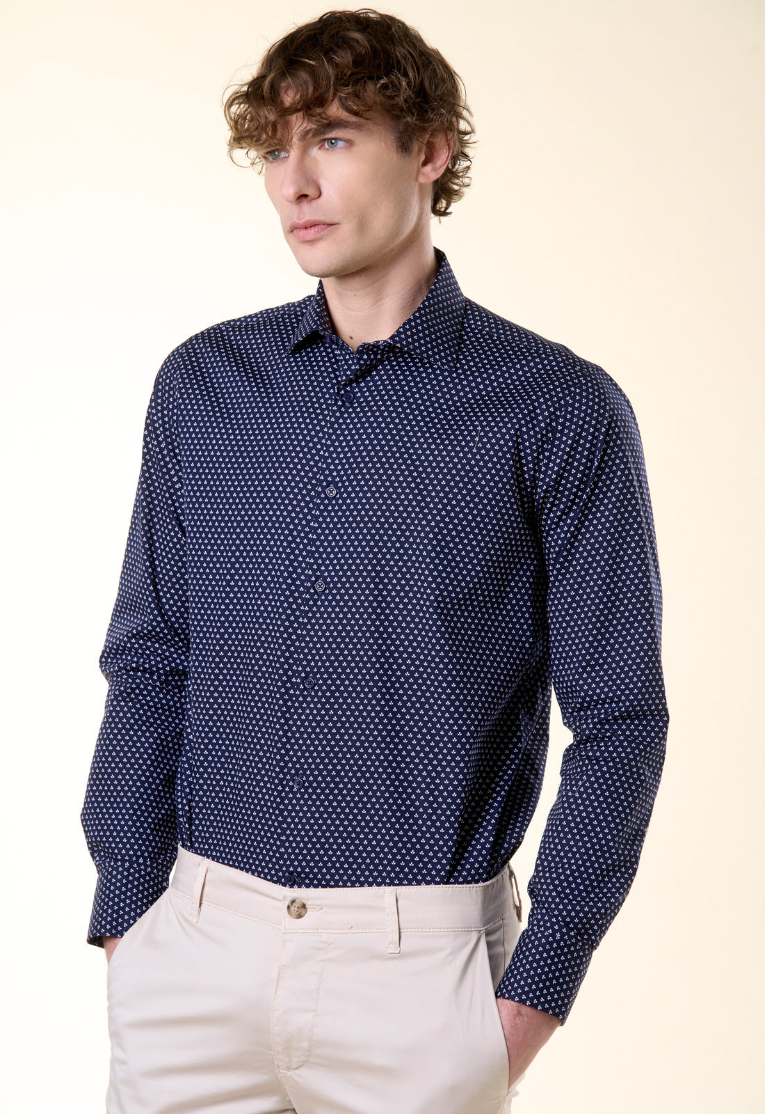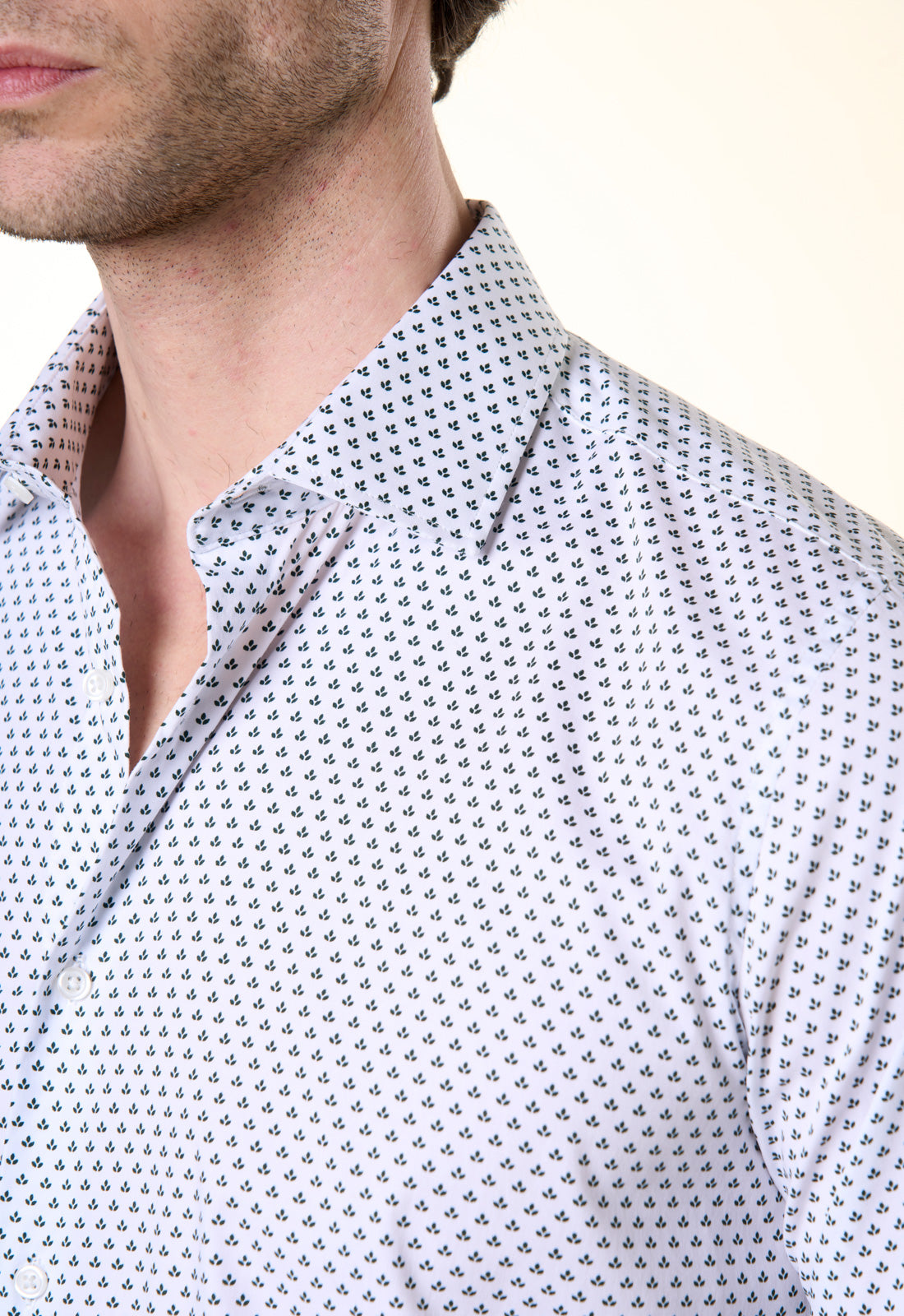 Aggiungi un tocco di freschezza naturale al tuo stile con la camicia Ivy, un capo che fonde l'eleganza sartoriale con un design grafico moderno e discreto. Caratterizzata da una micro-stampa all-over a piccoli motivi fogliati in verde scuro su fondo bianco, questa camicia è pensata per l'uomo che ama distinguersi con classe e sobrietà.