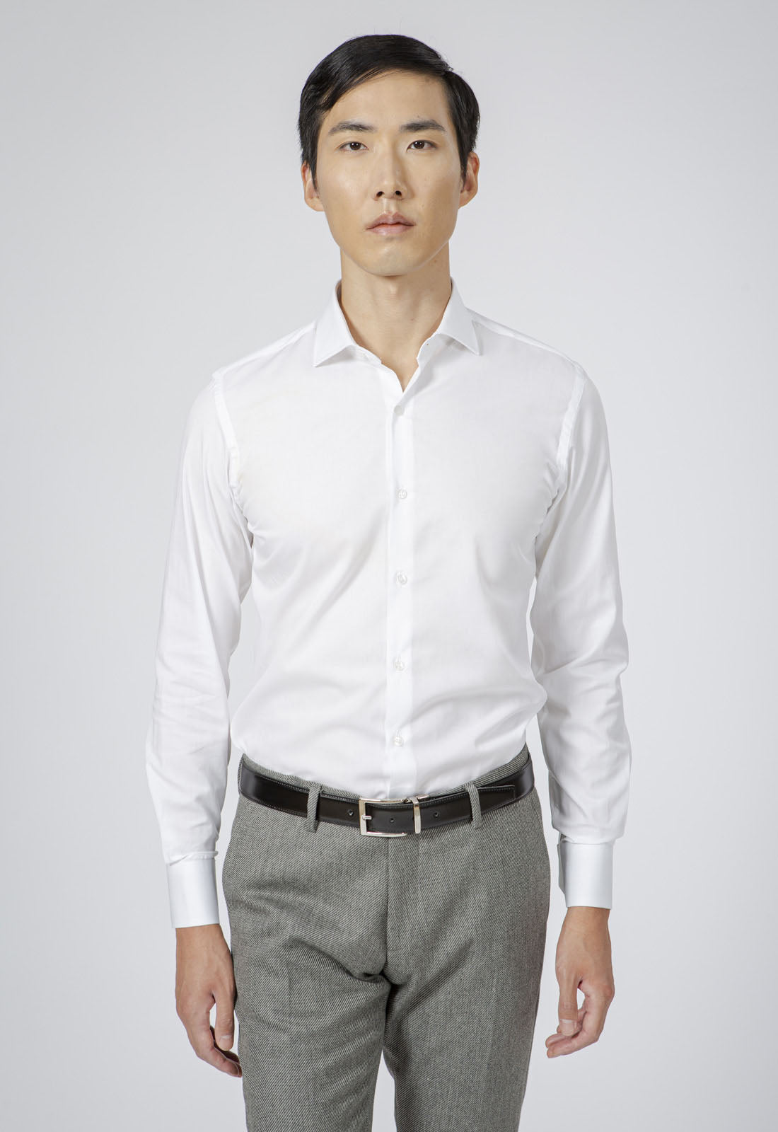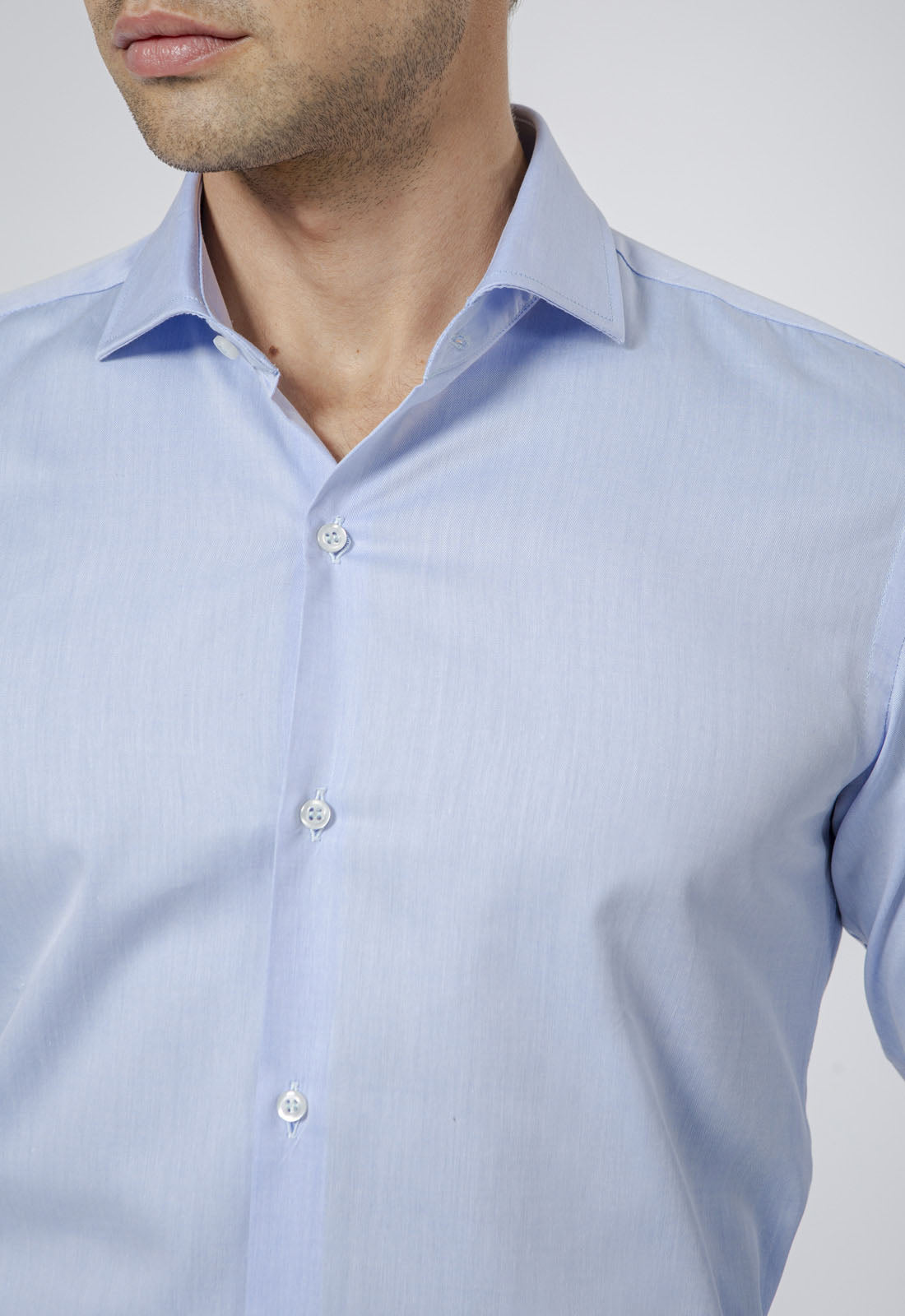 La camicia si presenta in tinta unita con il collo francese semiaperto che può essere indossato con o senza cravatta, rendendola ideale sia per l'ufficio che per occasioni formali. Realizzata in puro cotone Twill, offre polsini regolabili a due bottoni.
