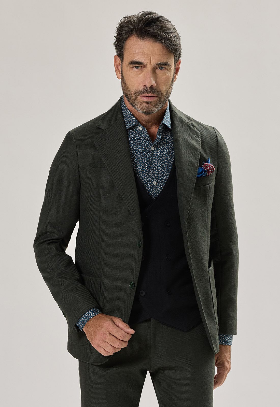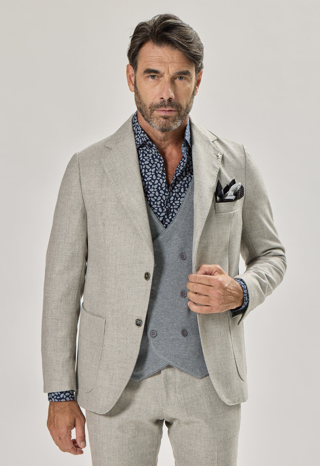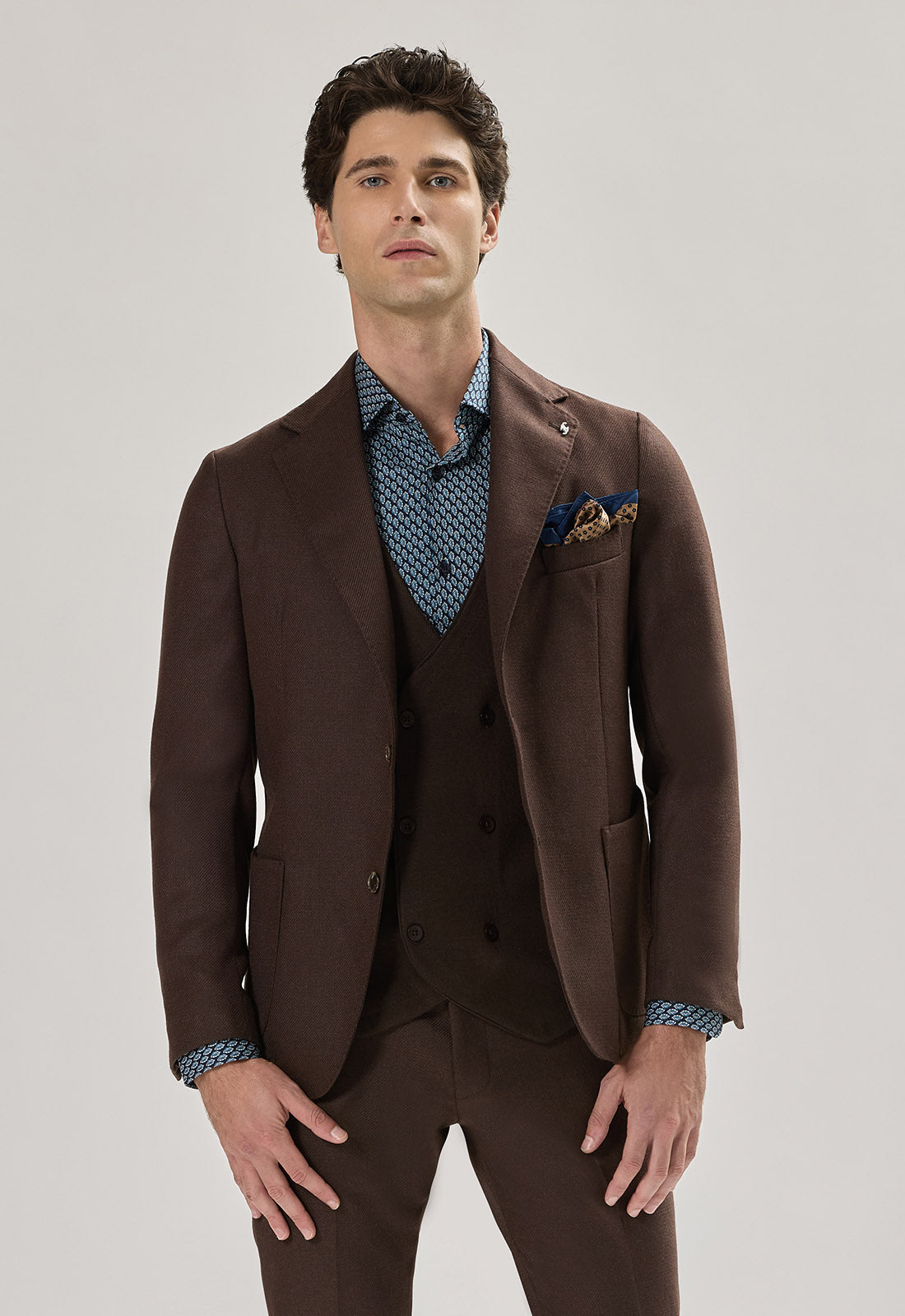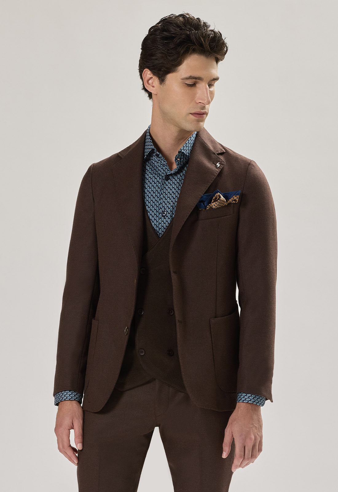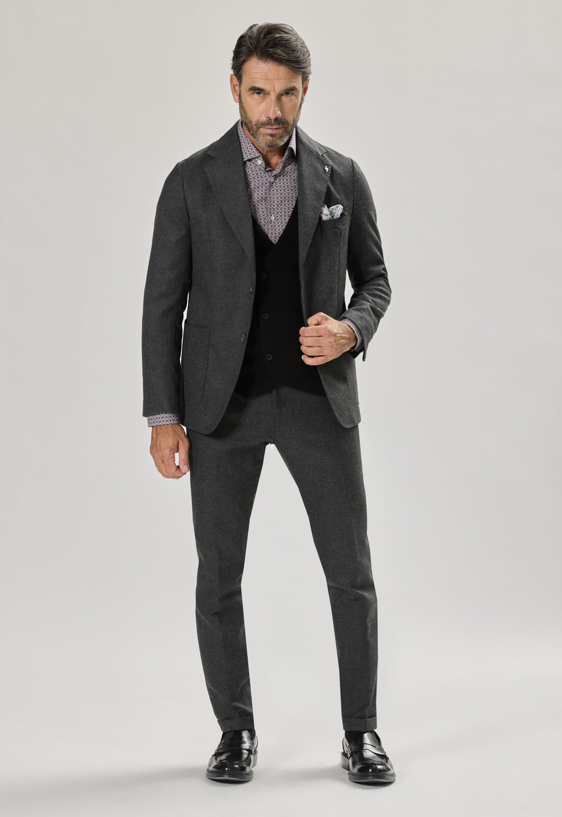 Rinnova il tuo guardaroba business e formale con questo abito due pezzi, espressione di un’eleganza senza tempo rivisitata in chiave moderna. Caratterizzato da una texture materica distintiva, questo completo è progettato per l'uomo che cerca distinzione senza rinunciare alla praticità.