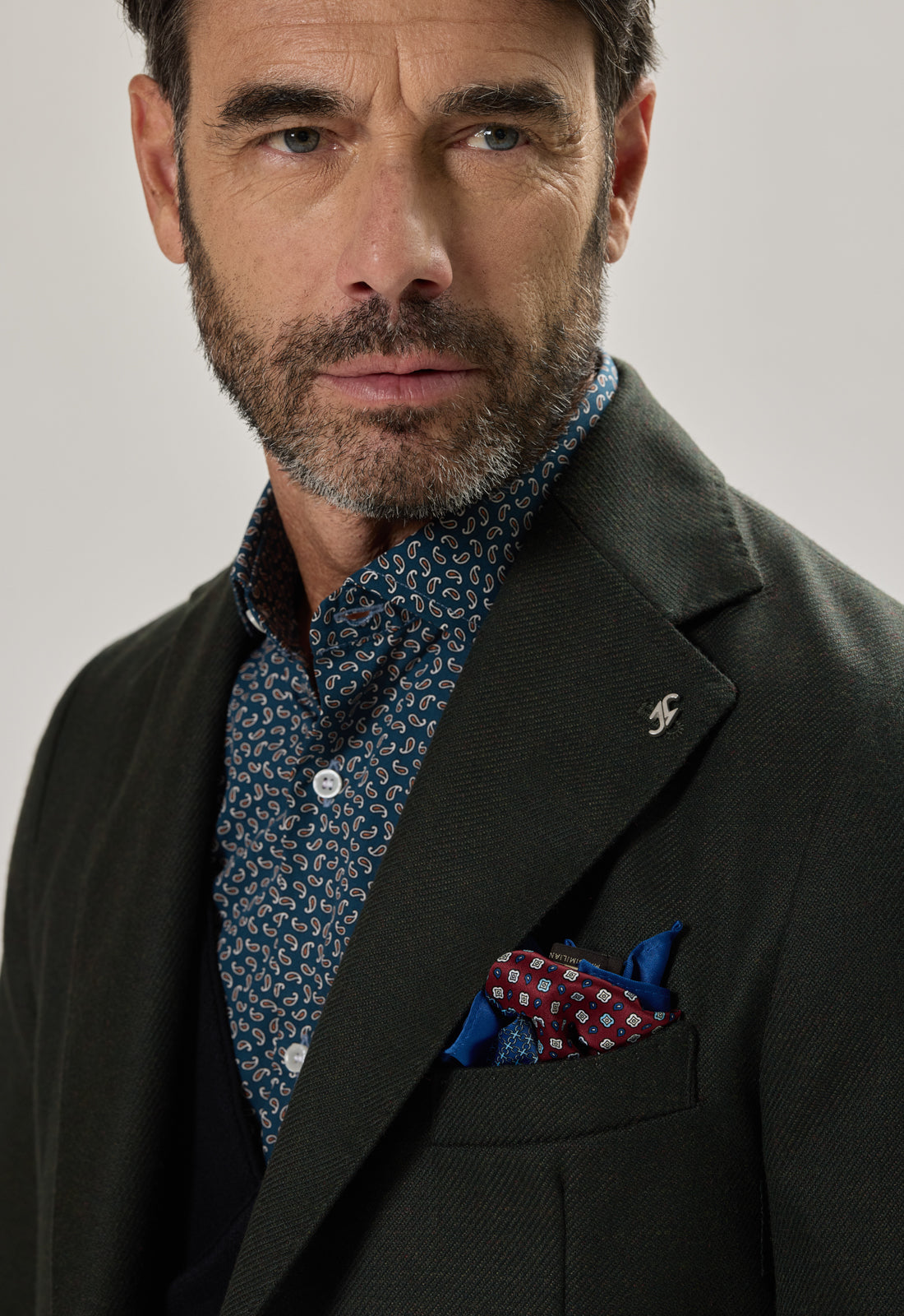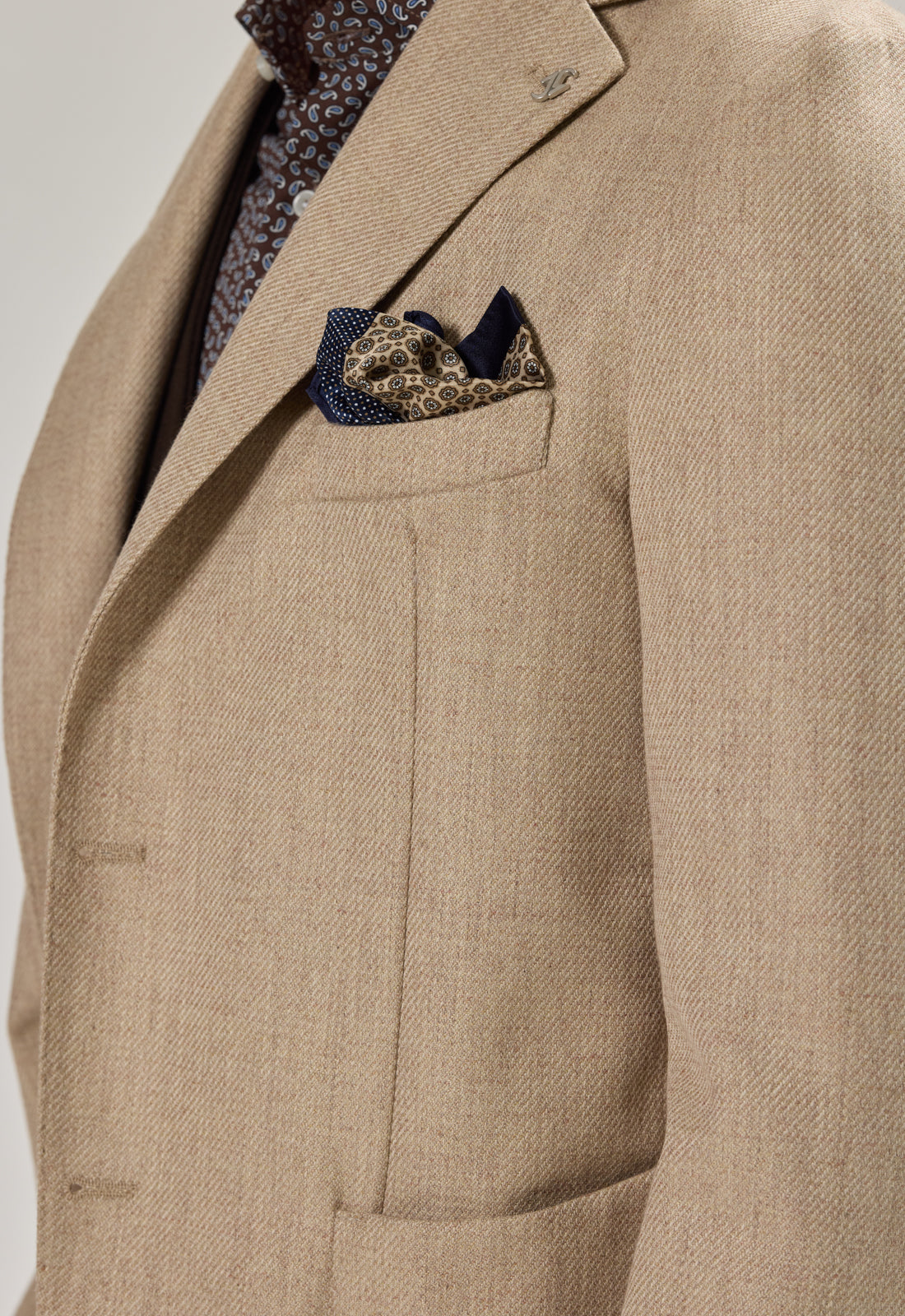 Dettagli di Stile: Finiture sartoriali interne, asole rifinite con cura e un taschino a filetto superiore perfetto per accogliere una pochette in contrasto.