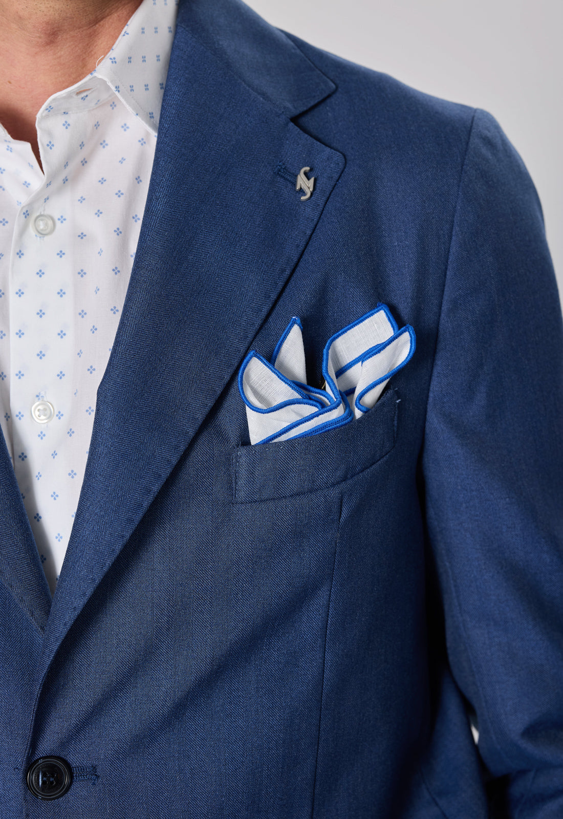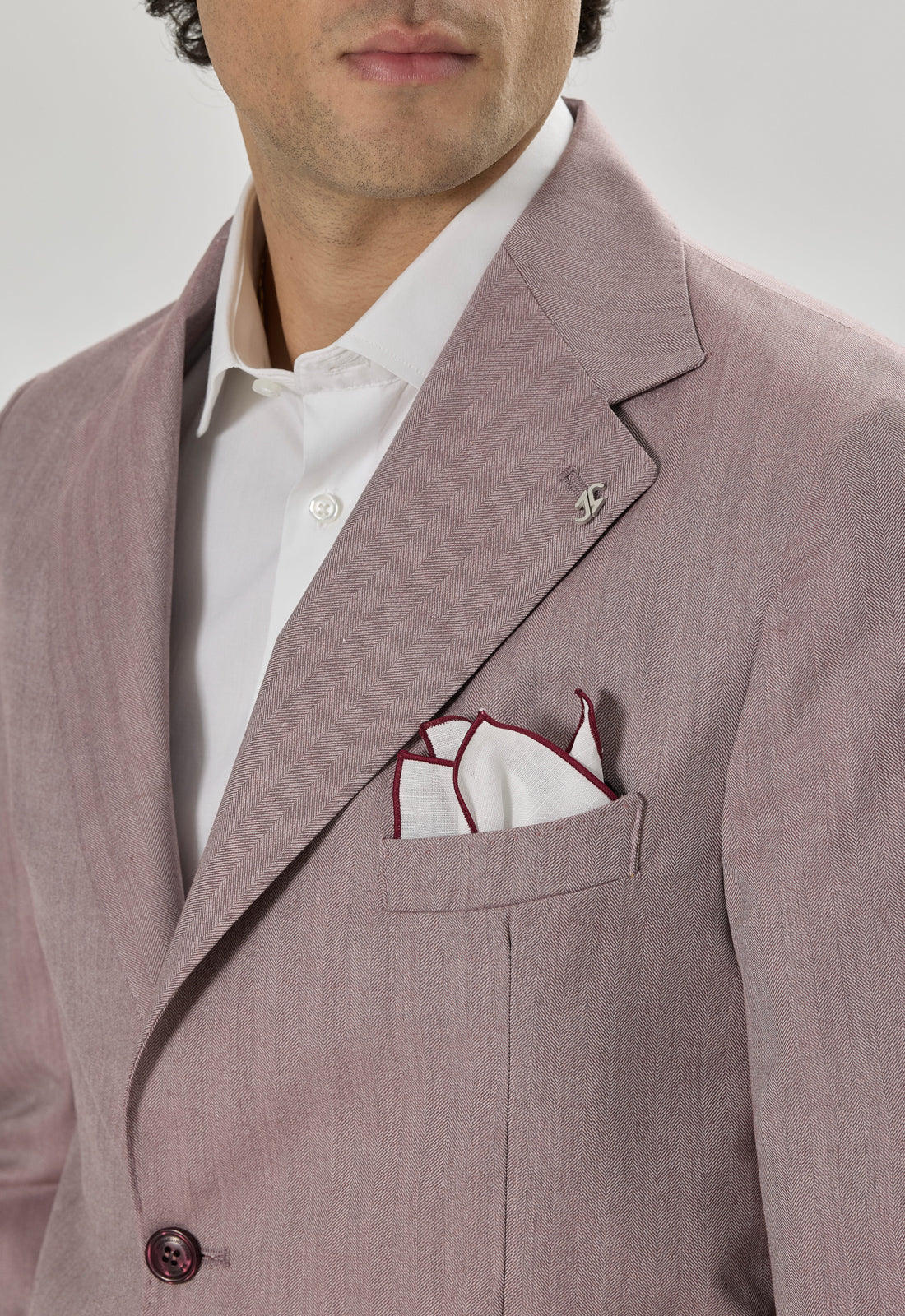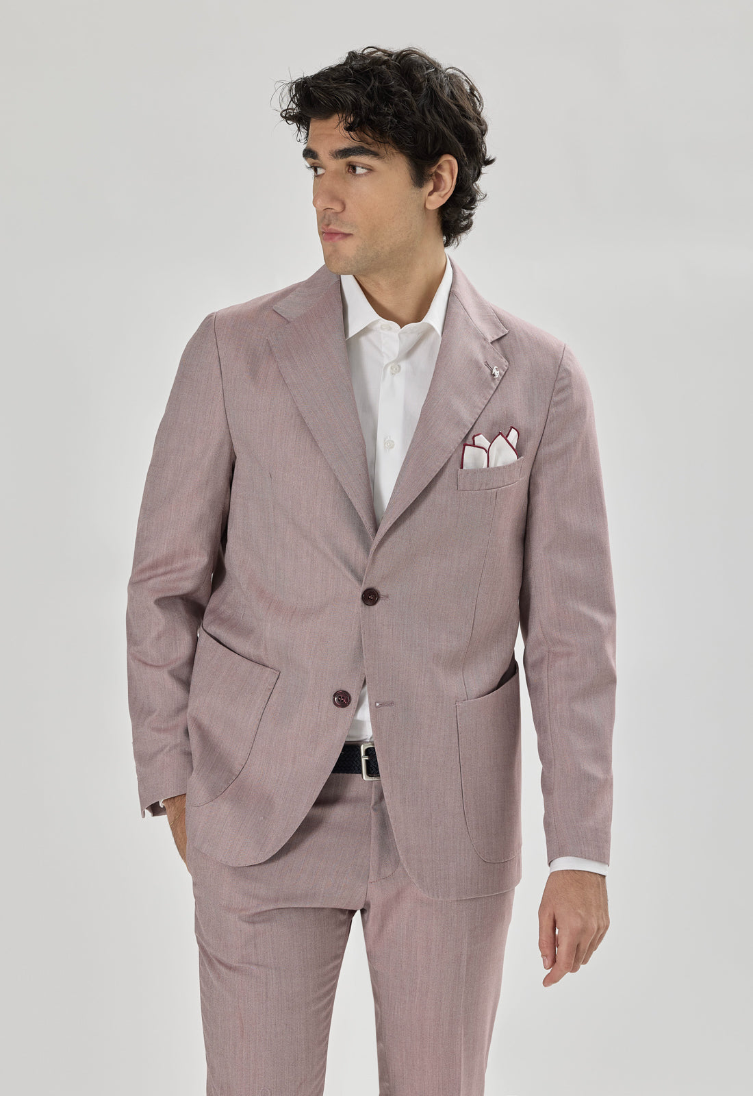 Giacca Monopetto: Costruzione leggera a due bottoni con revers a dente. Le tasche a toppa conferiscono un tocco sportivo e ricercato, rendendo la giacca perfetta da indossare anche separatamente con un paio di jeans o chino.