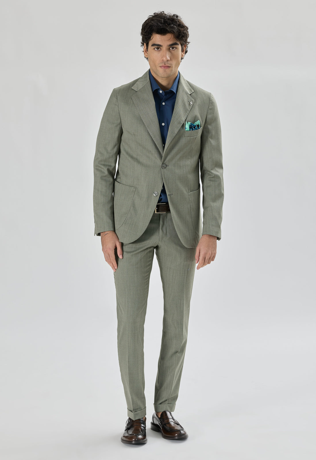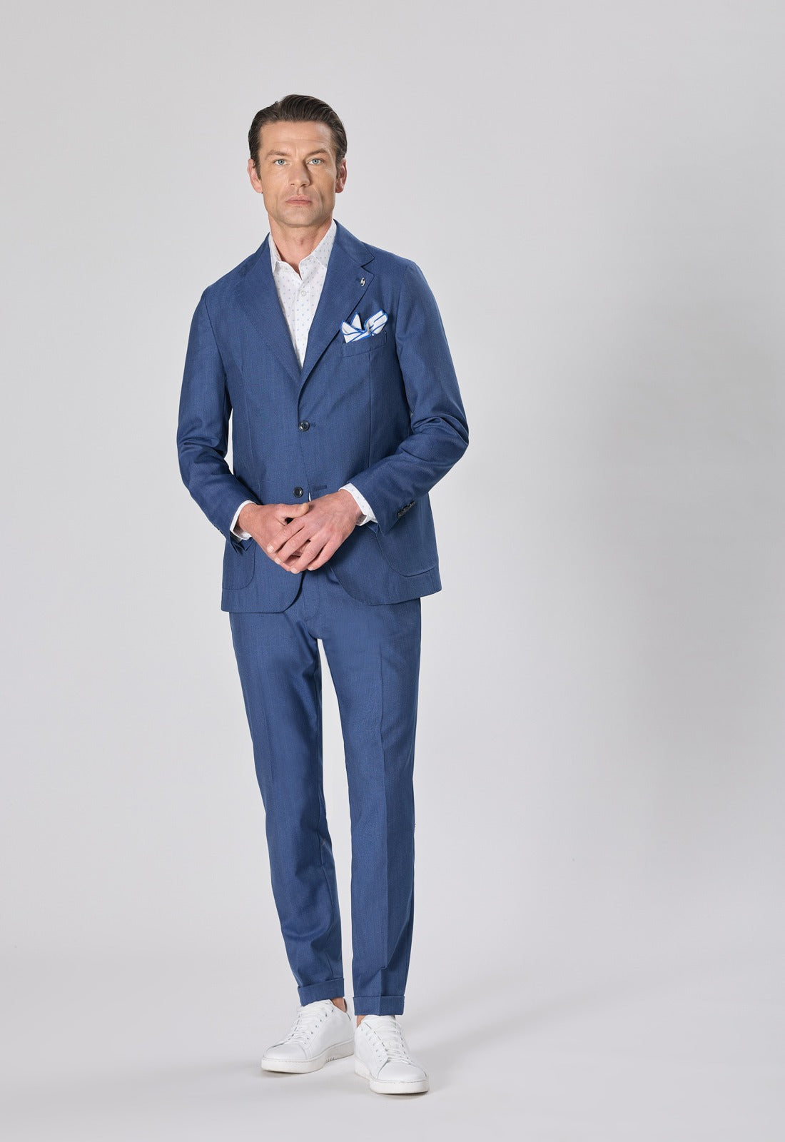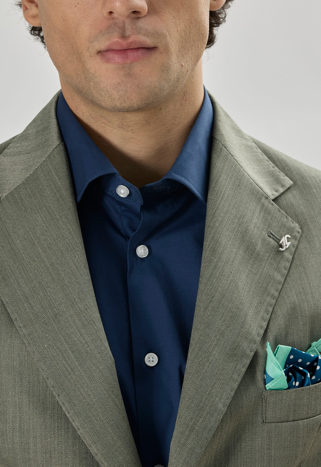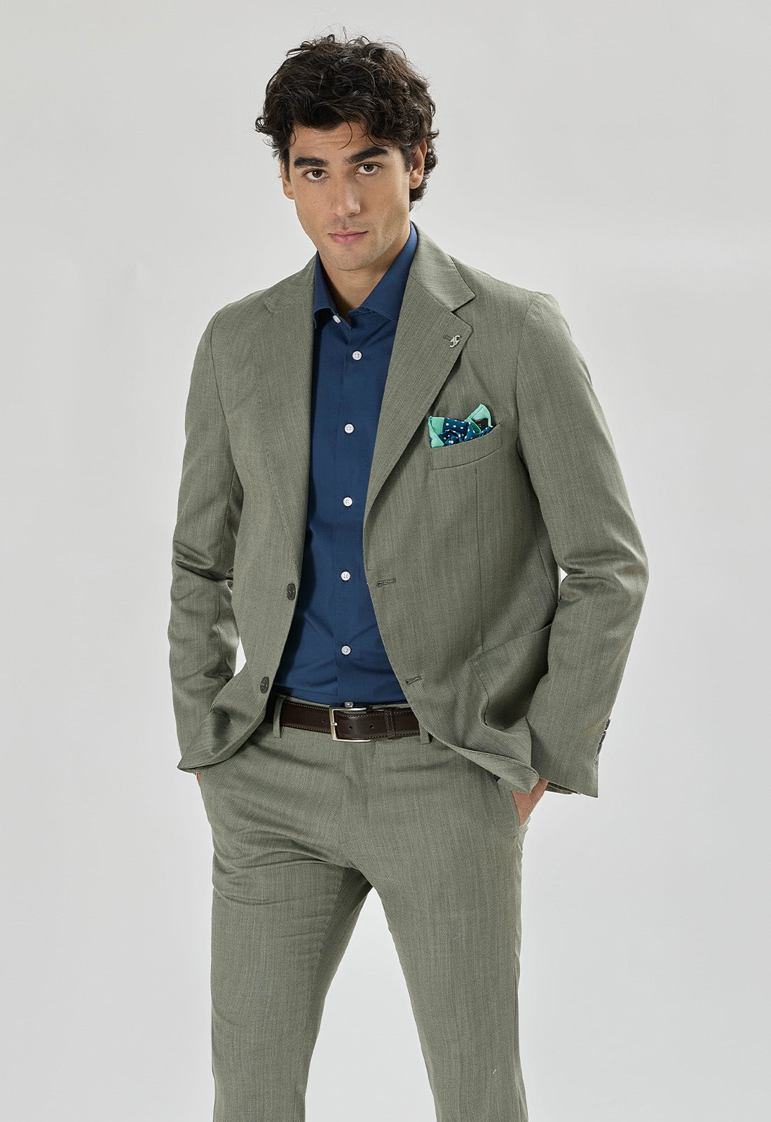 Tessuto Premium: Realizzato in un mix leggero e traspirante, ideale per le stagioni intermedie e i mesi più caldi. La particolare texture del tessuto aggiunge profondità visiva e resistenza alle pieghe.