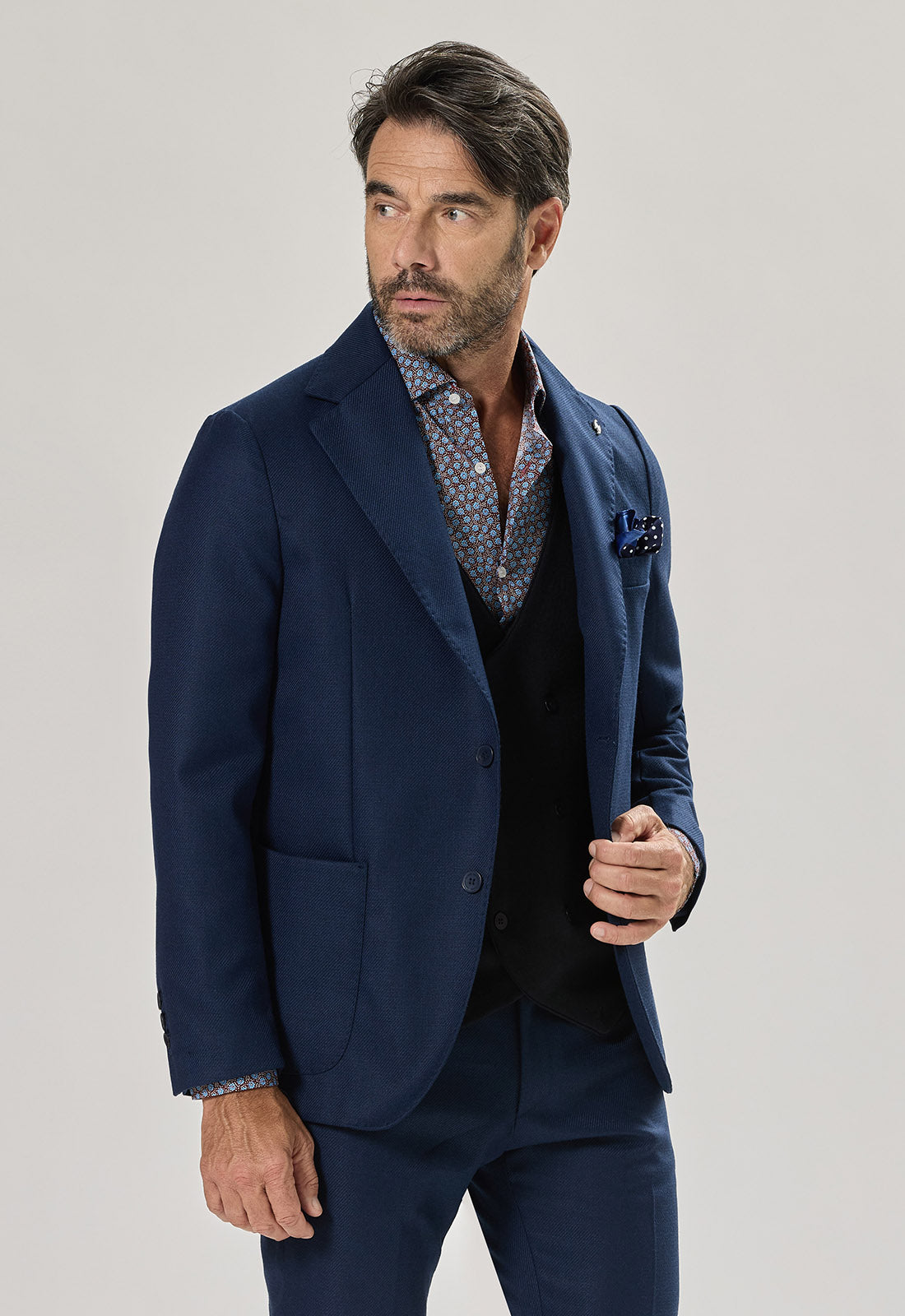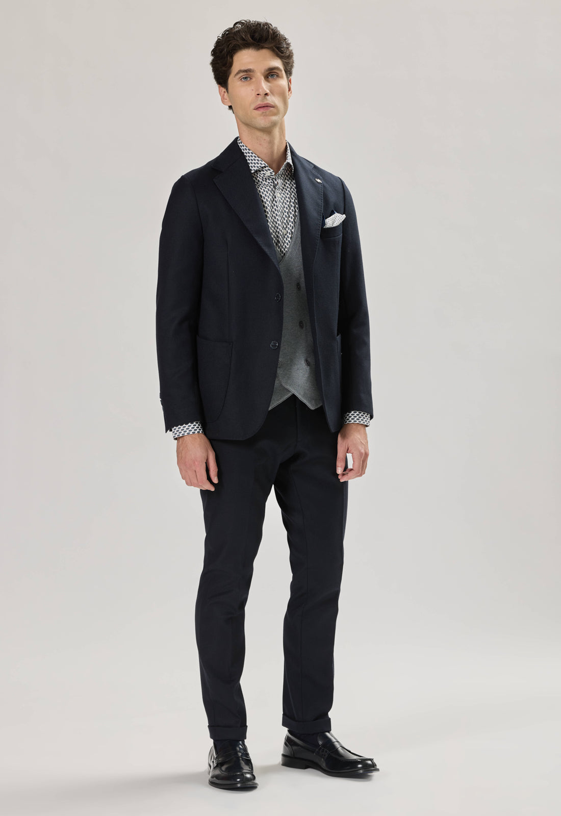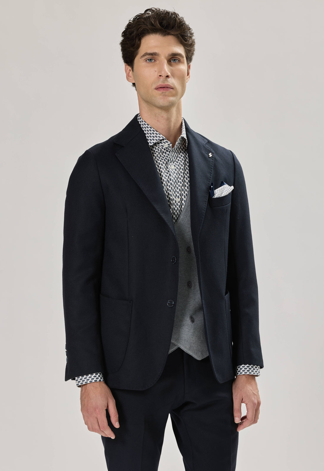 La giacca ha un taglio leggermente sfiancato che esalta la silhouette senza sacrificare il comfort.