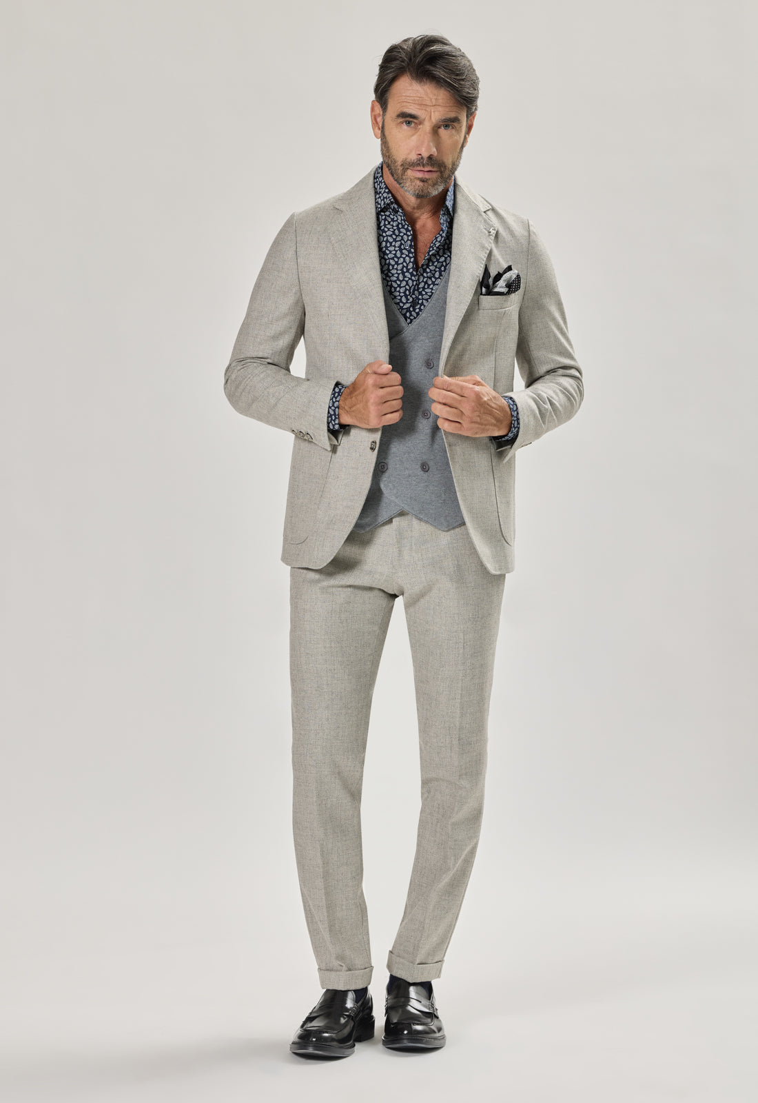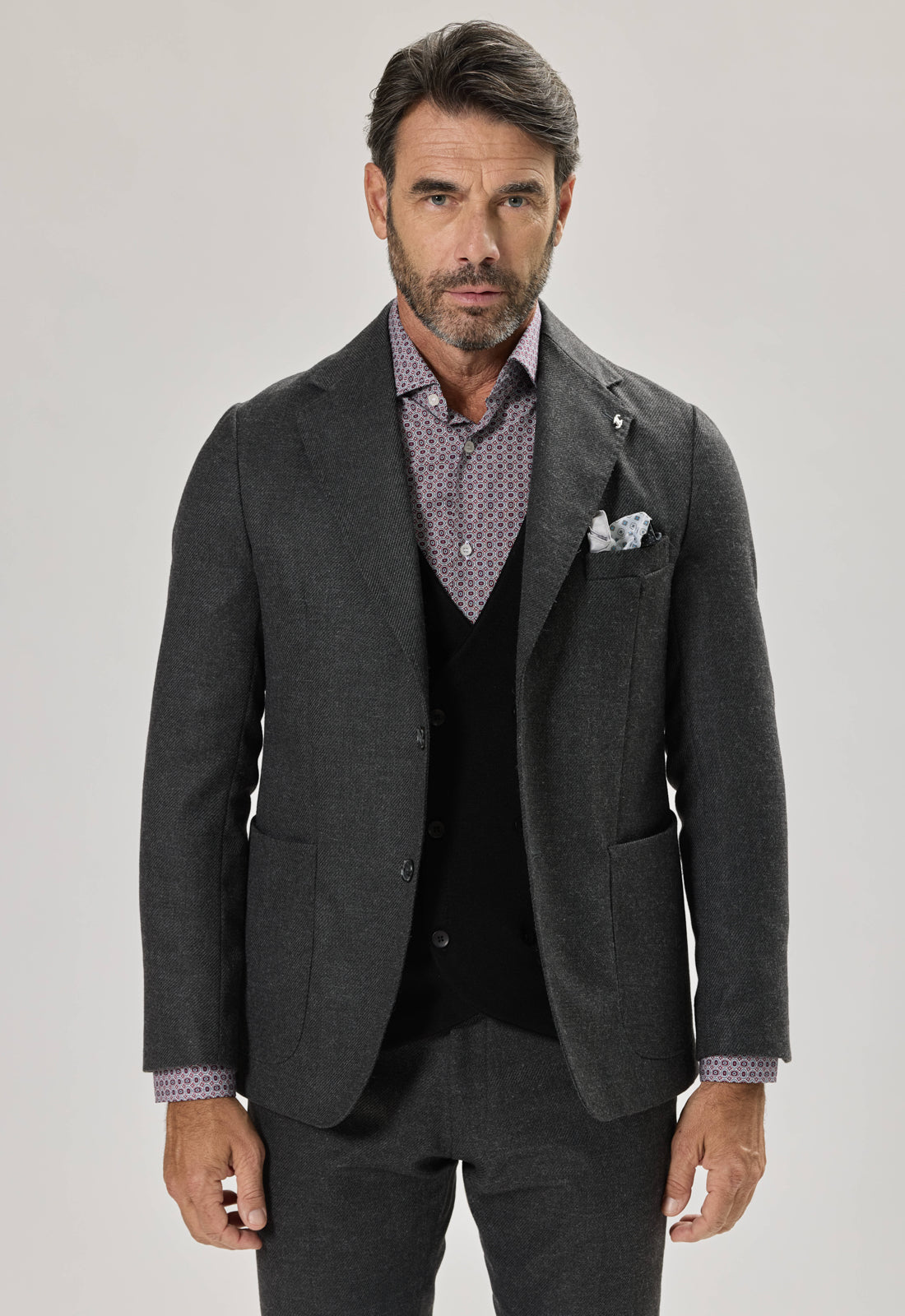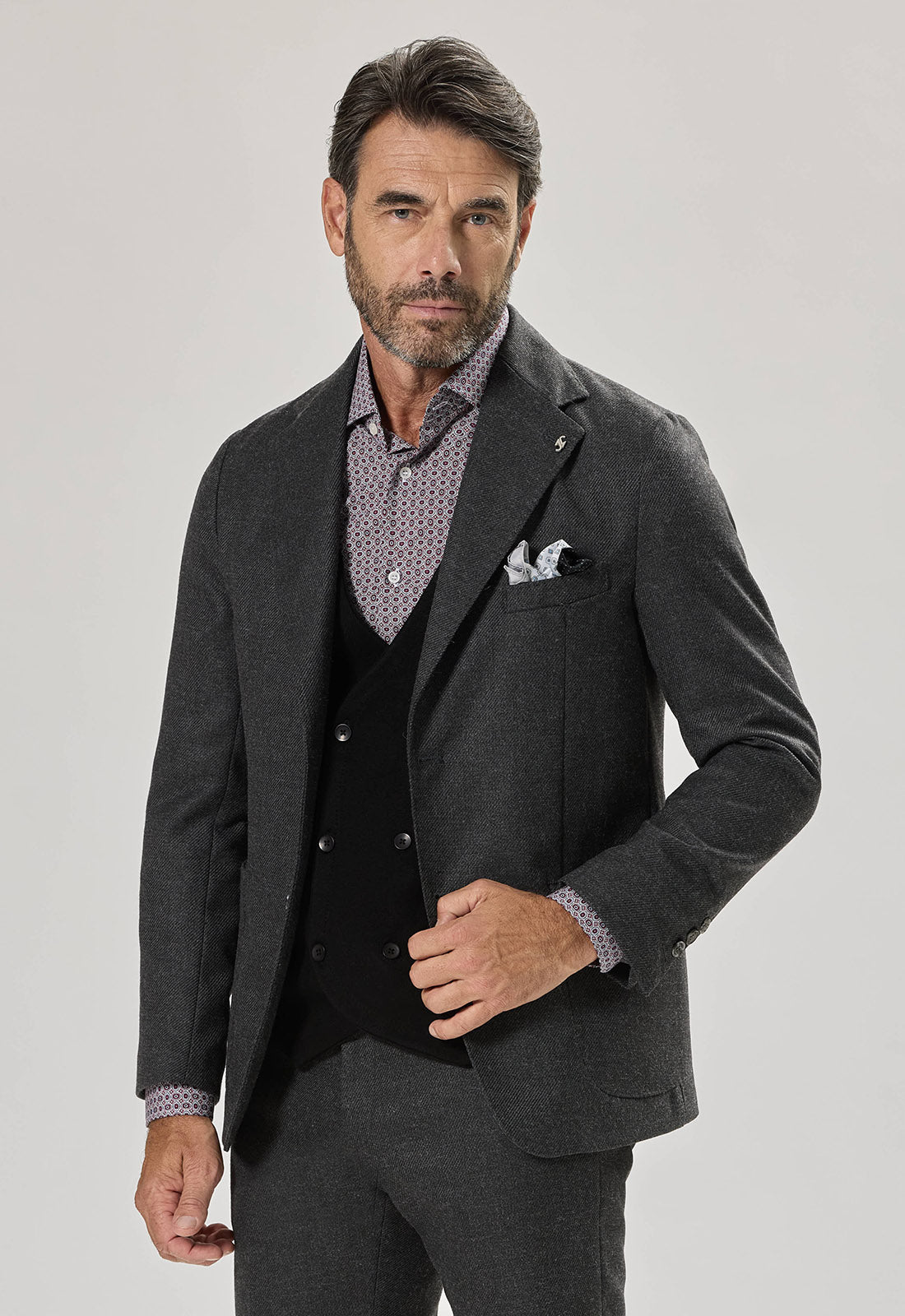 La giacca ha un taglio leggermente sfiancato che esalta la silhouette senza sacrificare il comfort.