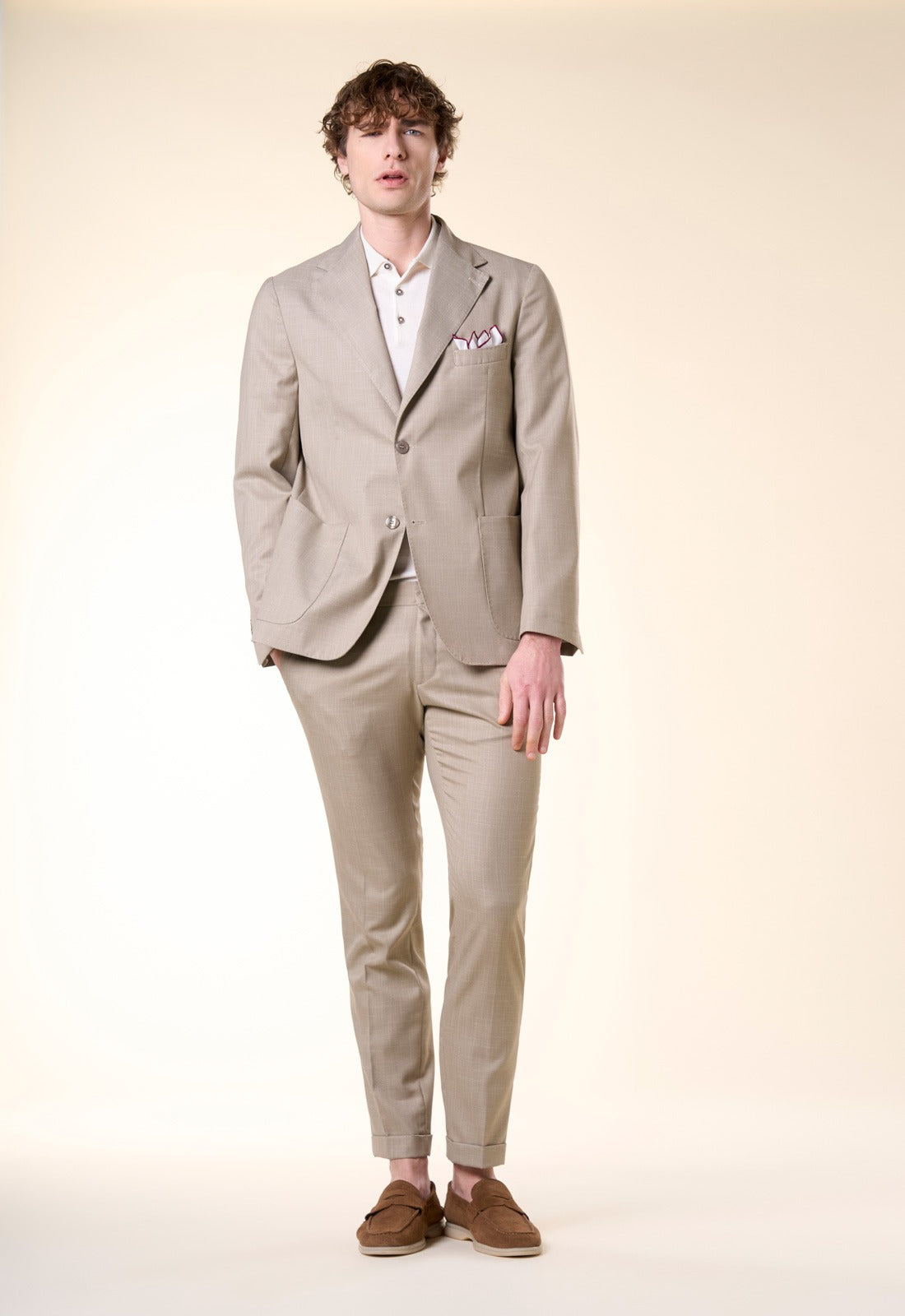 • Tessuto Premium: Realizzato in un mix leggero e traspirante, ideale per le temperature miti e per mantenere una piega impeccabile durante tutta la giornata.