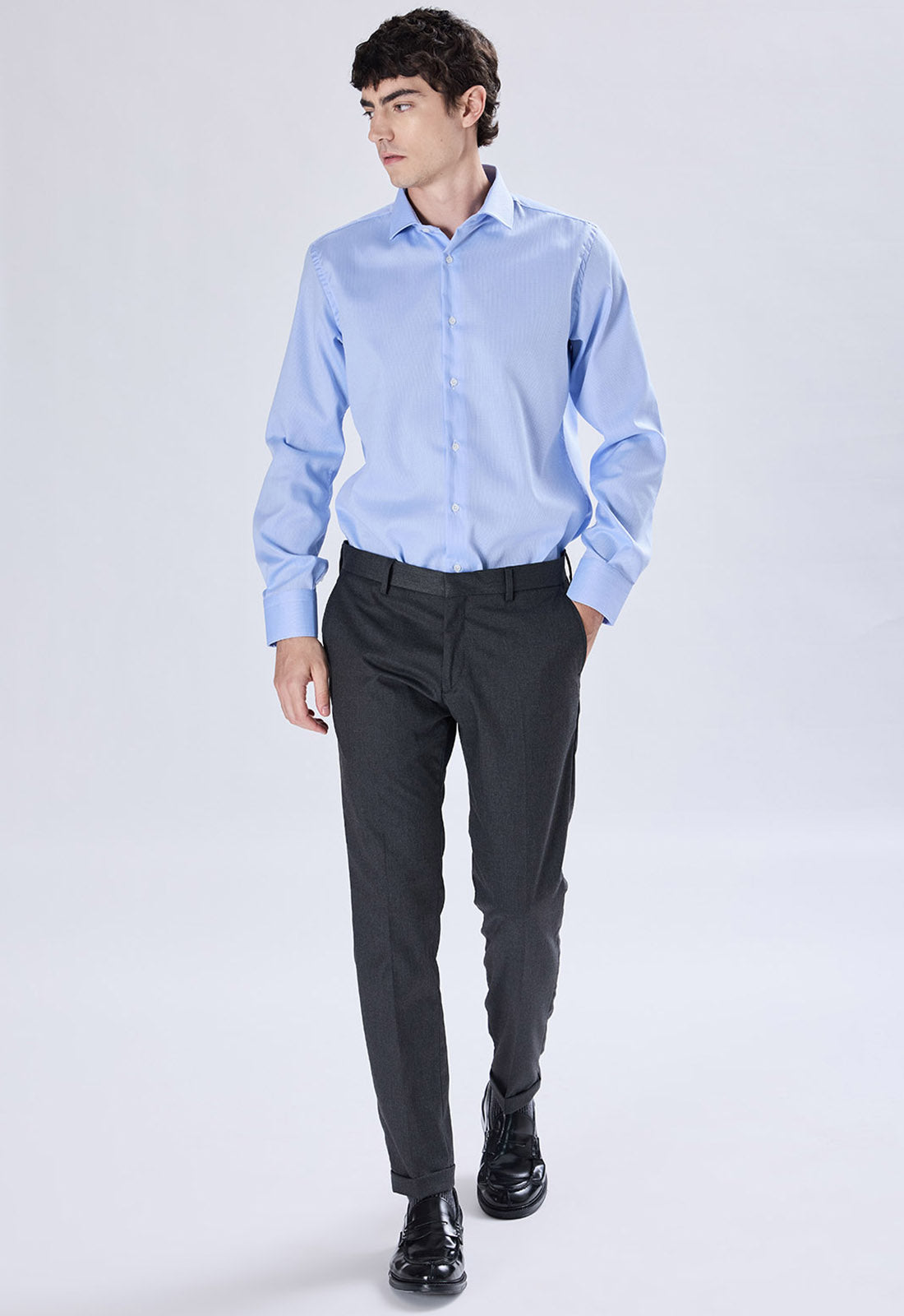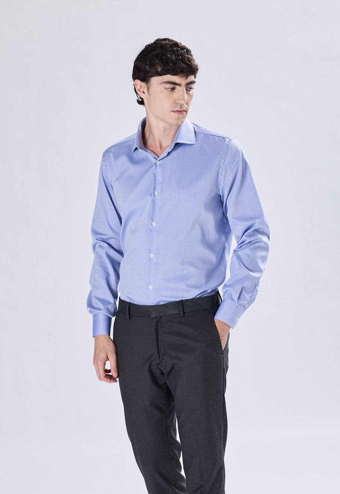 This shirt features a micro-structure that gives the fabric a richer, less flat look than a simple poplin. The weave adds a touch of understated elegance, making it ideal for formal and semi-formal settings.