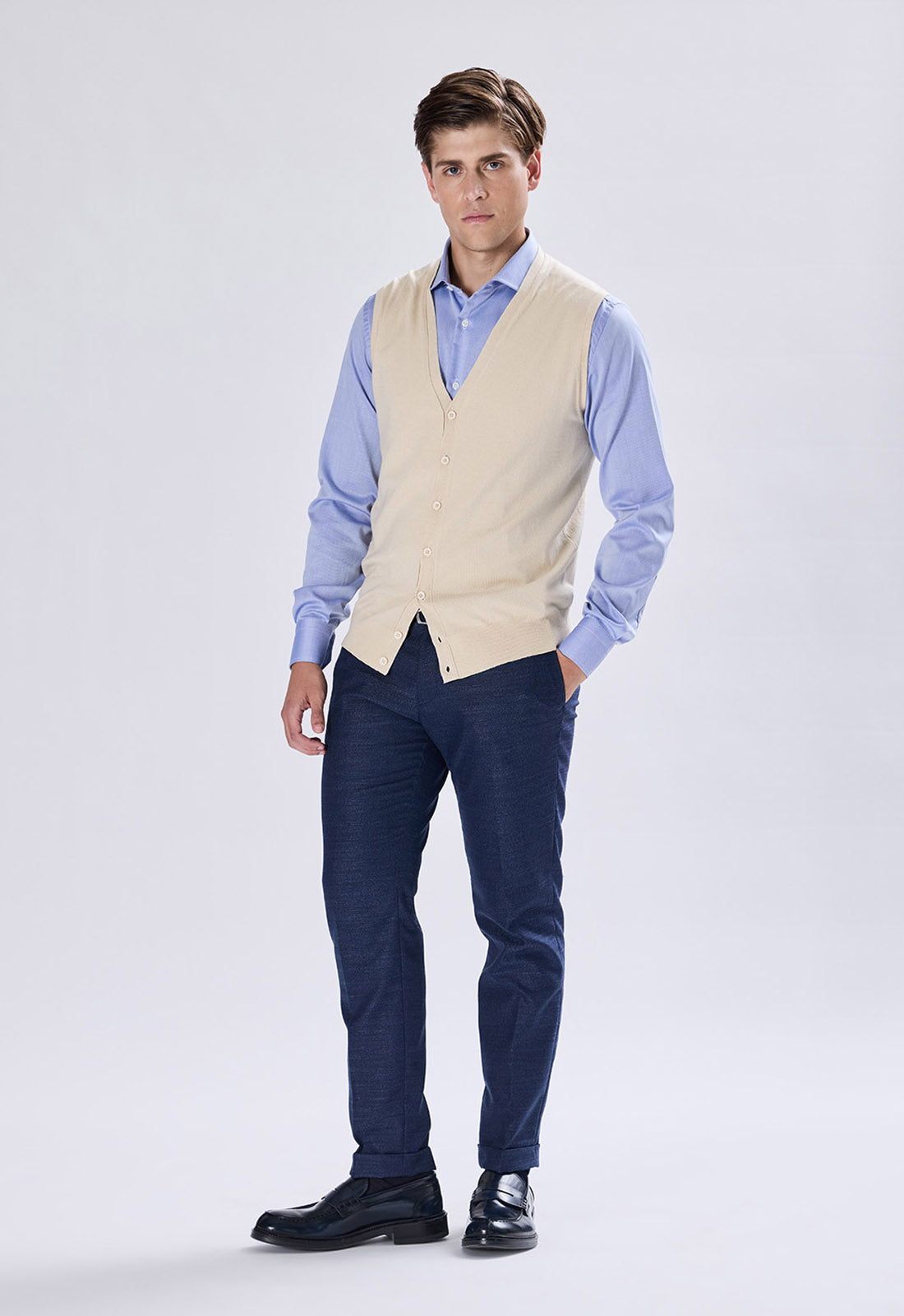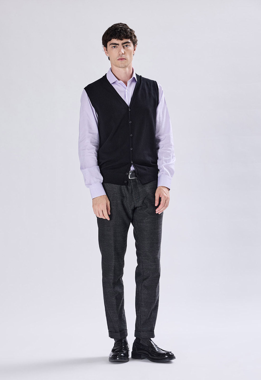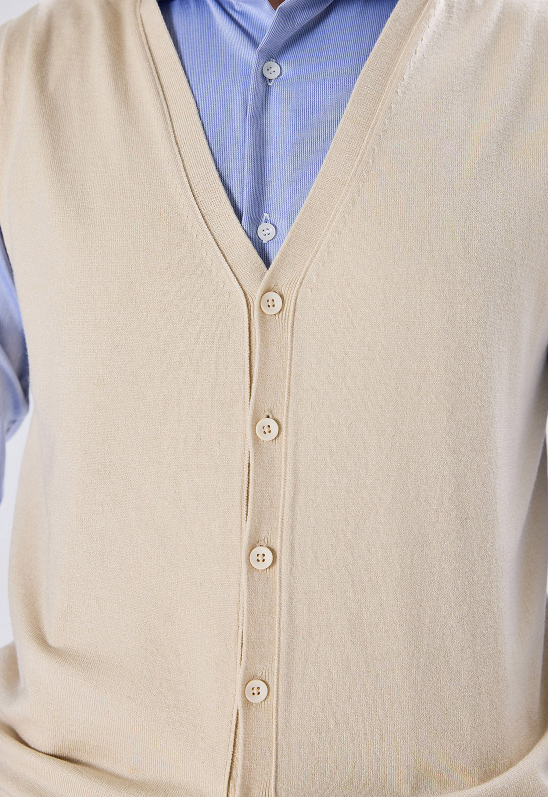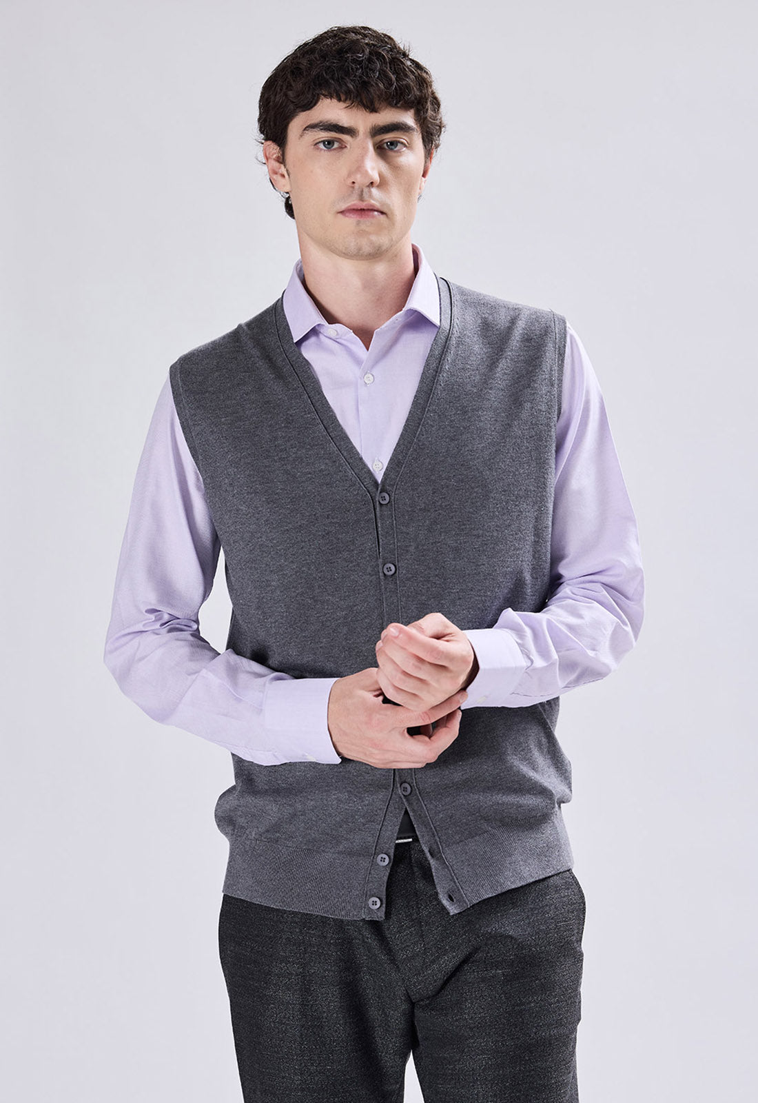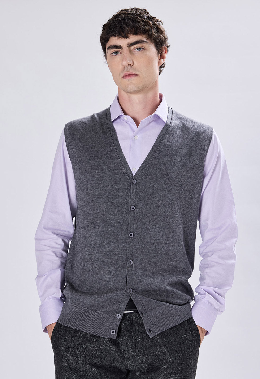 This single-breasted vest with ribbed cuffs and hem is an elegant and essential piece that's a must-have for your wardrobe. Featuring a V-neck and ribbed detailing on the cuffs and hem, this vest's regular fit makes it perfect for sporty and urban looks.
