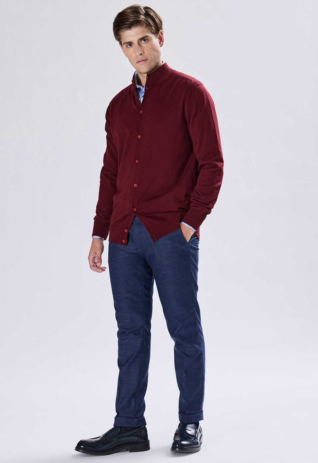 A sophisticated button-up sweater featuring a half-collar and ribbed details on the cuffs and hem. This piece is a wardrobe must-have, perfectly suited to both sporty and urban styles thanks to its slim fit.