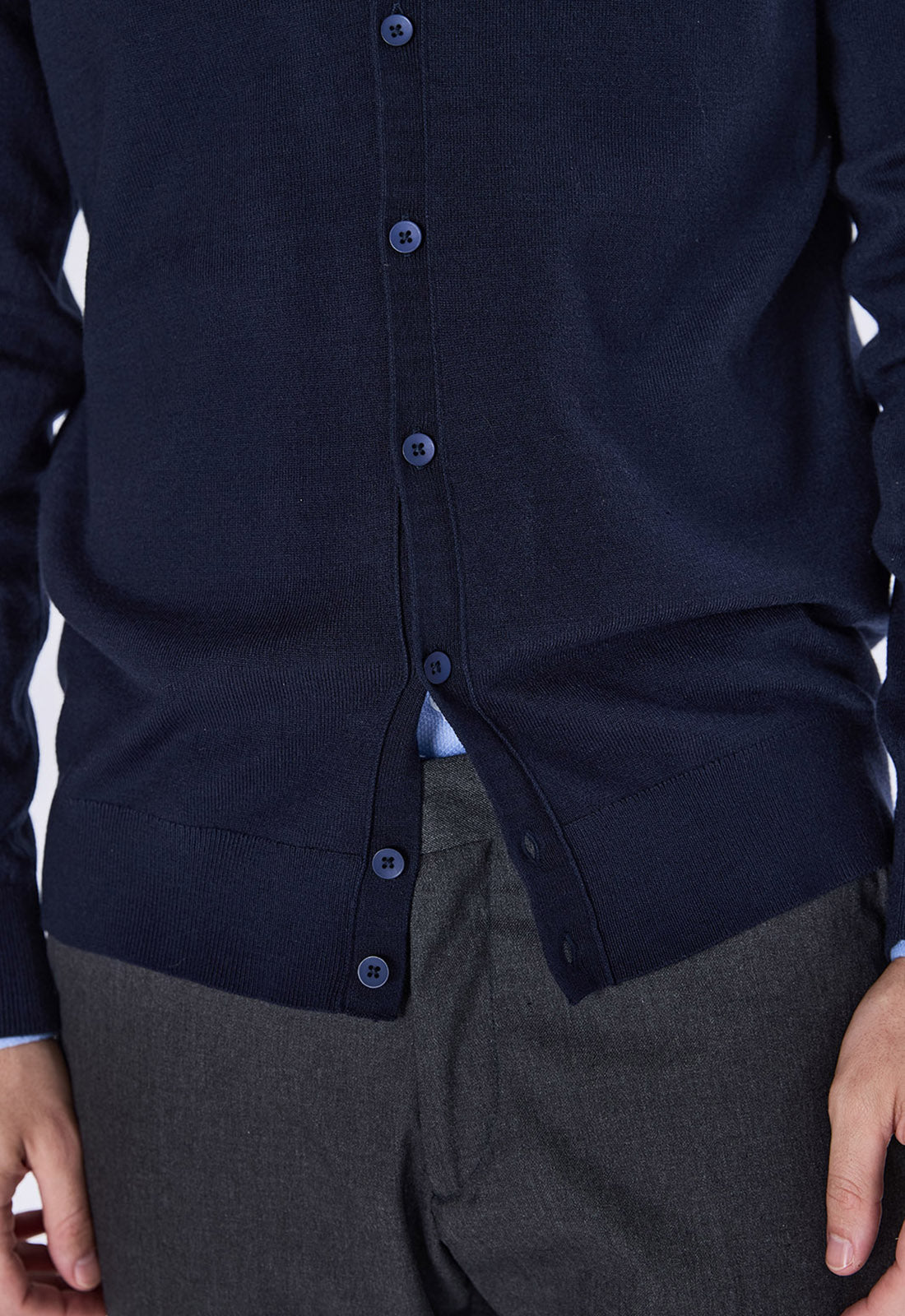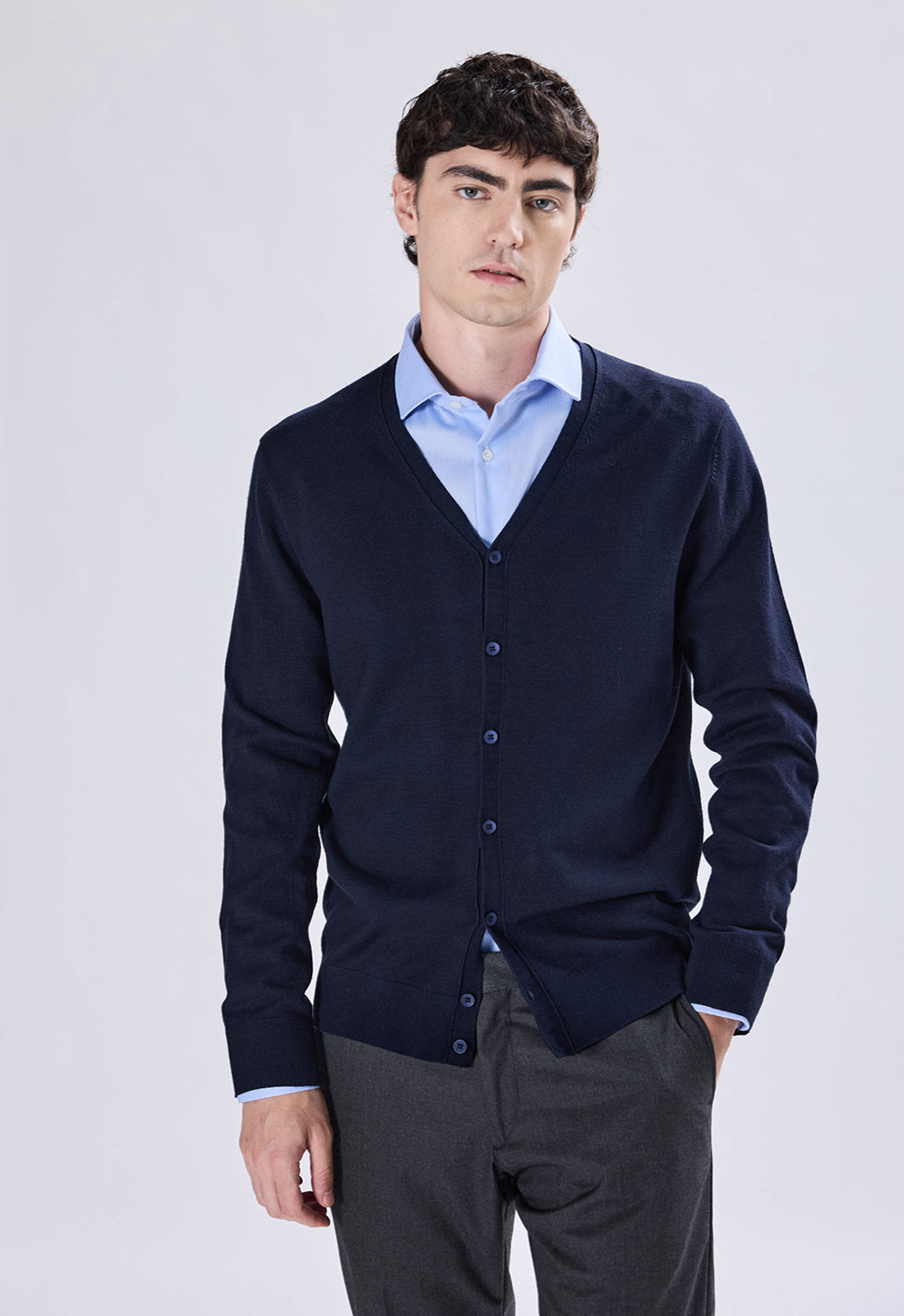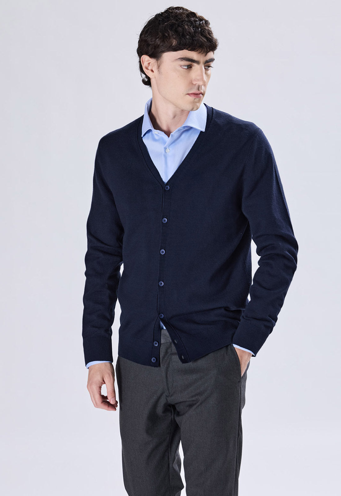 A basic V-neck cardigan featuring ribbed cuffs and hem. This piece is a wardrobe must-have, perfectly suited to both sporty and urban styles thanks to its slim fit.