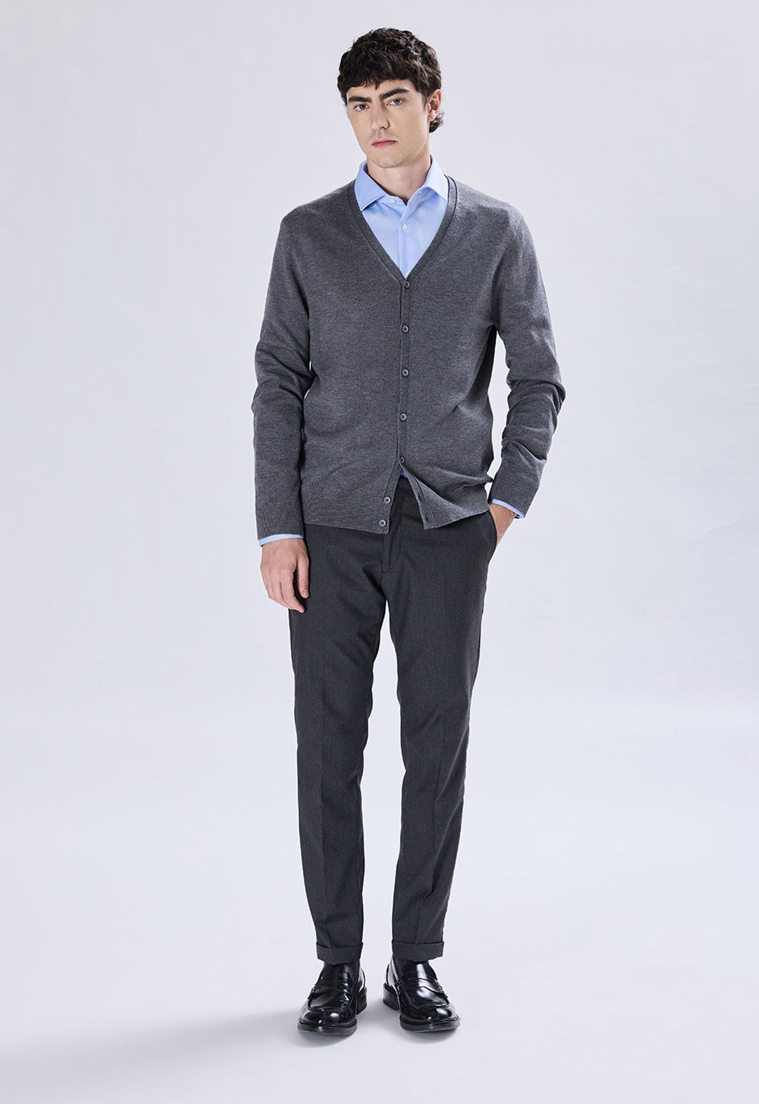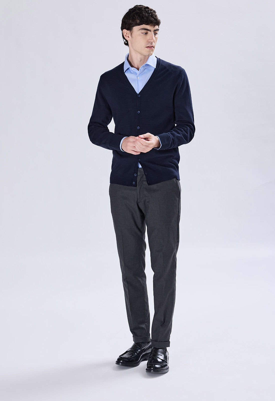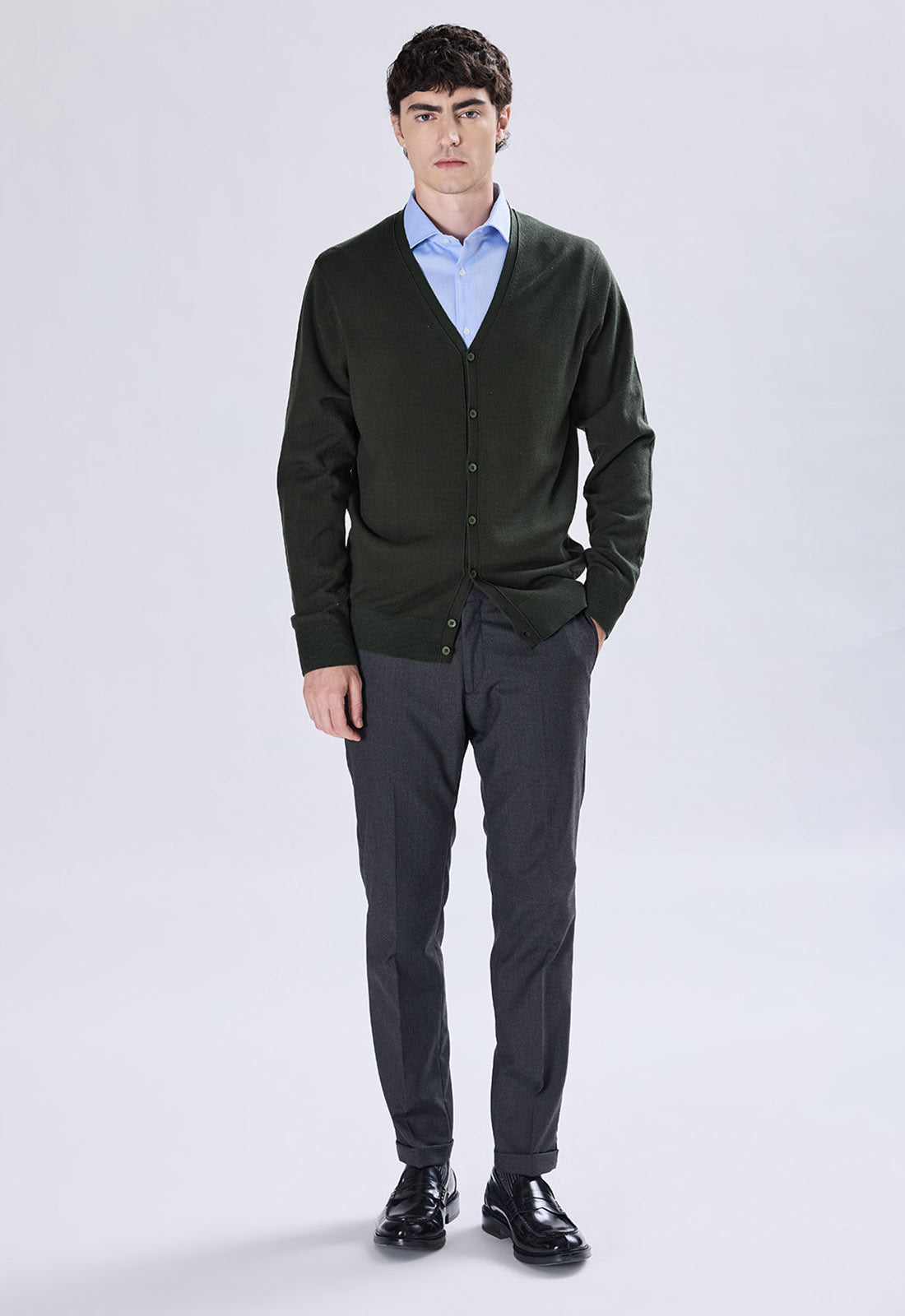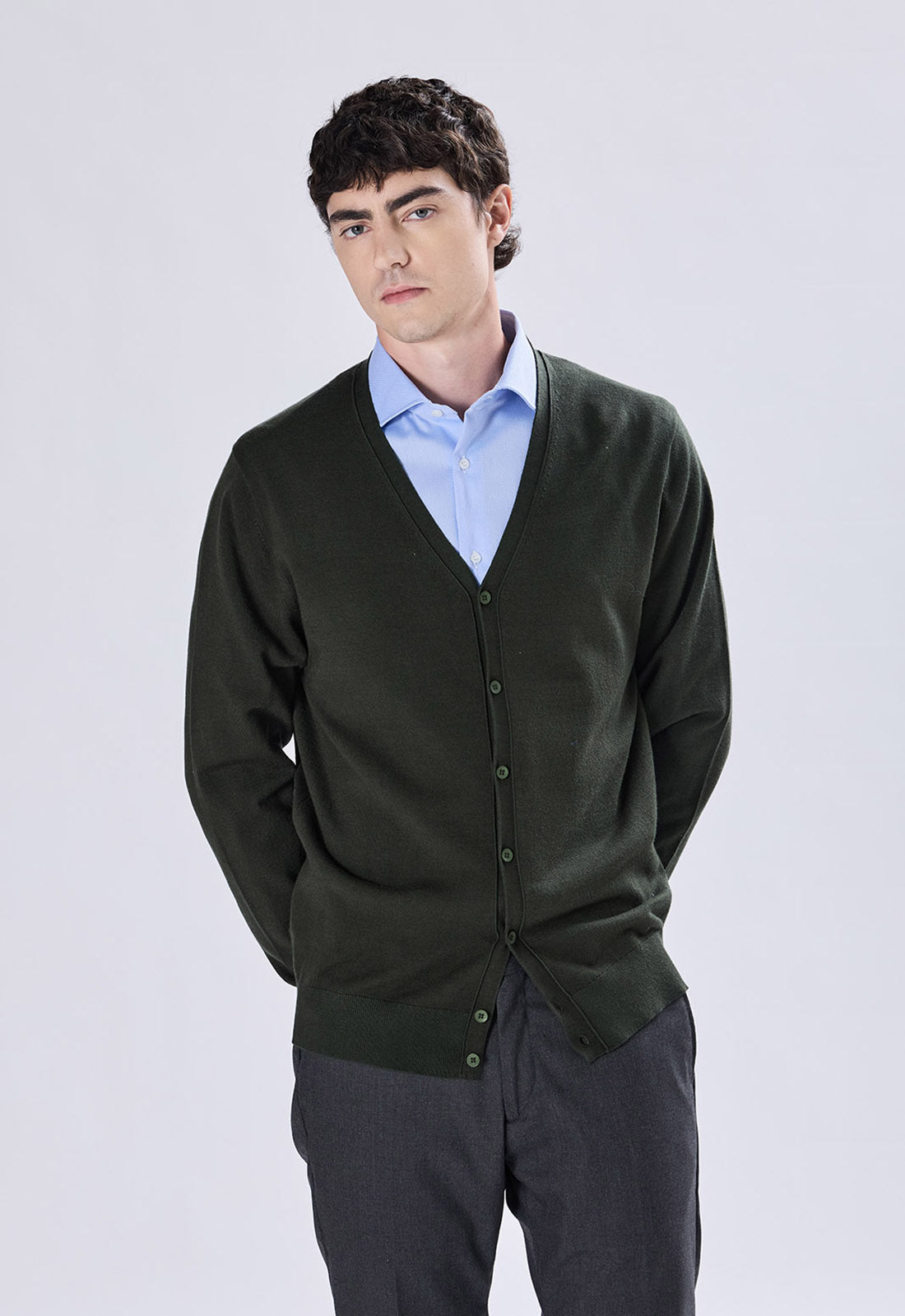A basic V-neck cardigan featuring ribbed cuffs and hem. This piece is a wardrobe must-have, perfectly suited to both sporty and urban styles thanks to its slim fit.