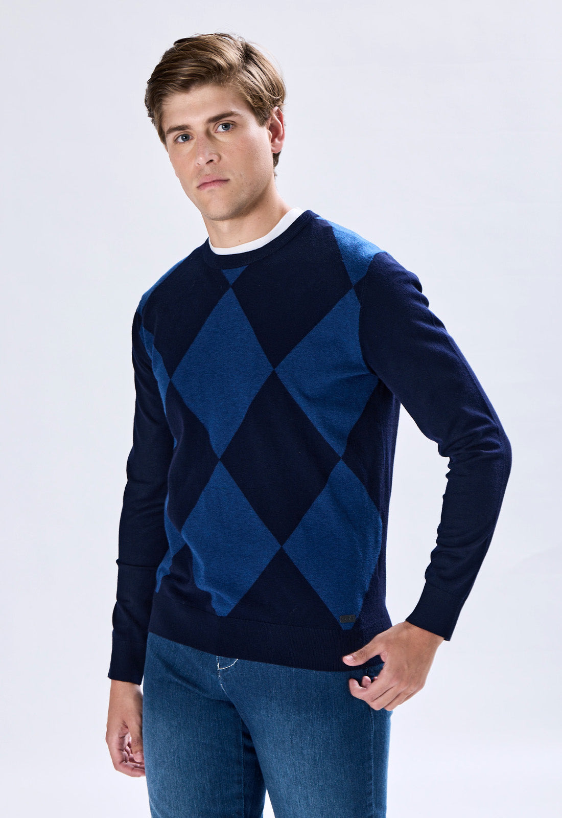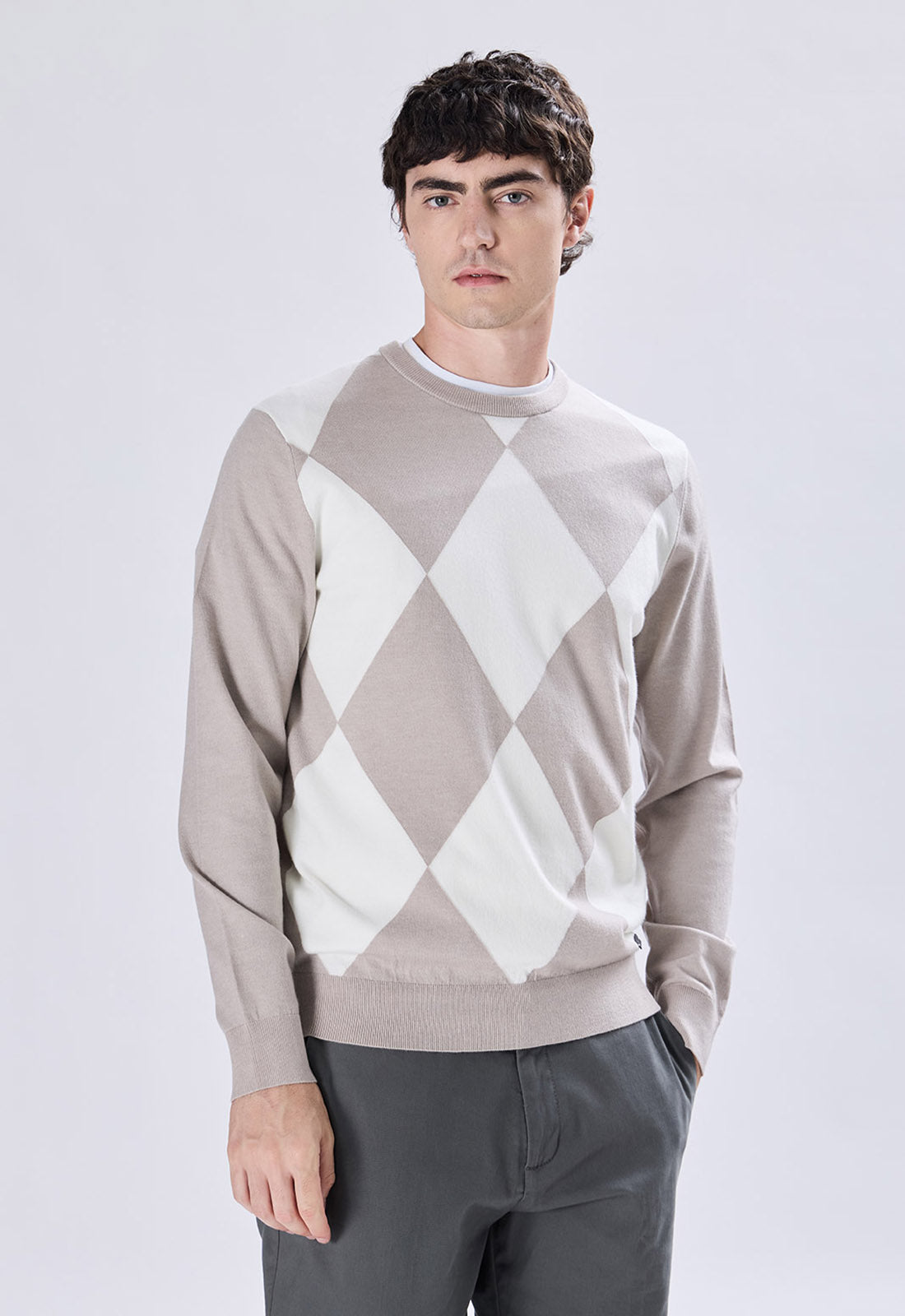 This essential sweater features the classic diamond pattern that covers the front panel, crafted in a sophisticated neutral color palette, this combination makes it incredibly easy to mix and match and perfect for any season.