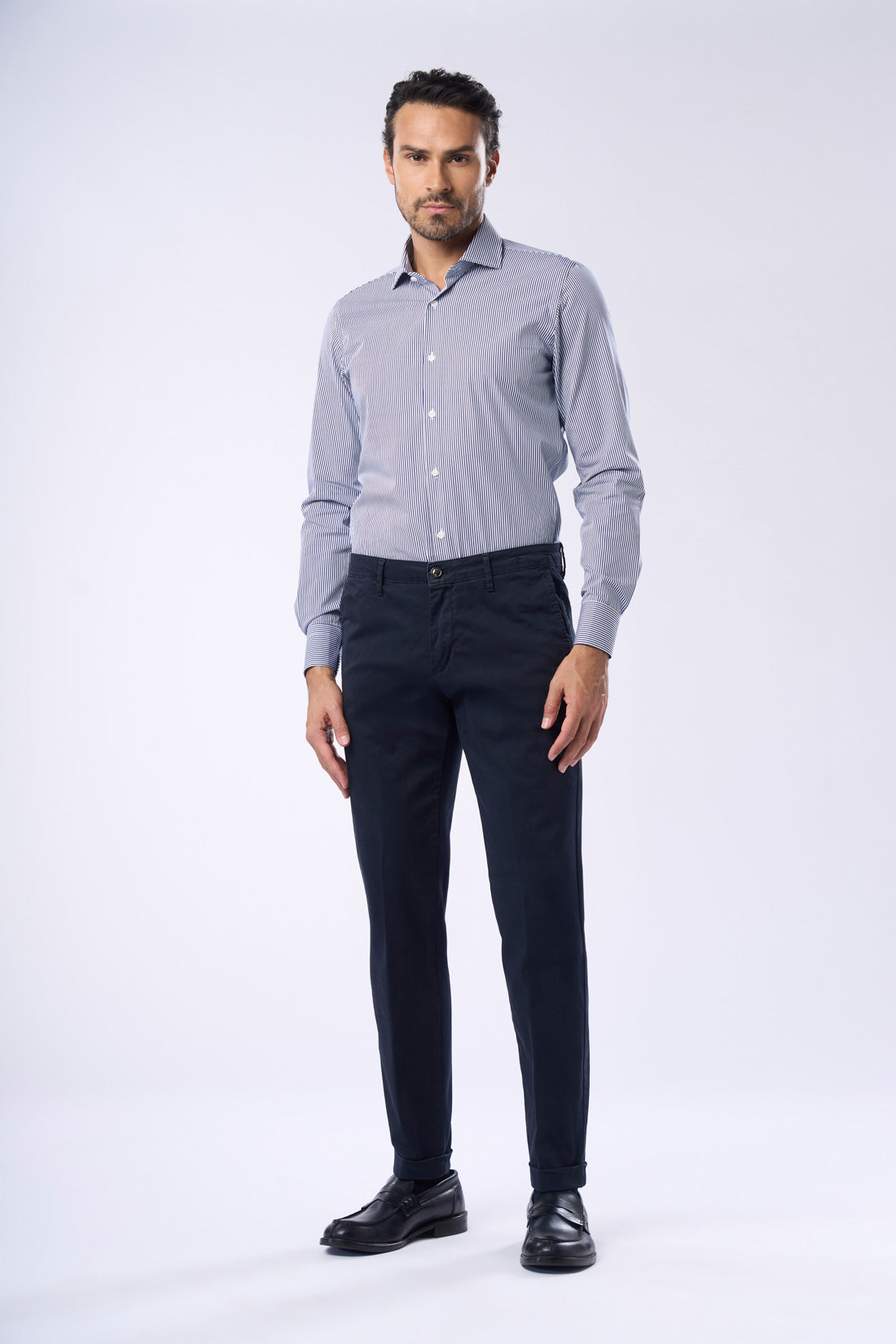 Questo pantalone è progettato per chi cerca la comodità del tessuto casual senza rinunciare a un taglio sartoriale. Realizzato in cotone, è leggermente elasticizzato offre comfort e una vestibilità precisa. La vestibilità Slim Fit delinea la figura, mantenendo comunque un'ottima libertà di movimento.