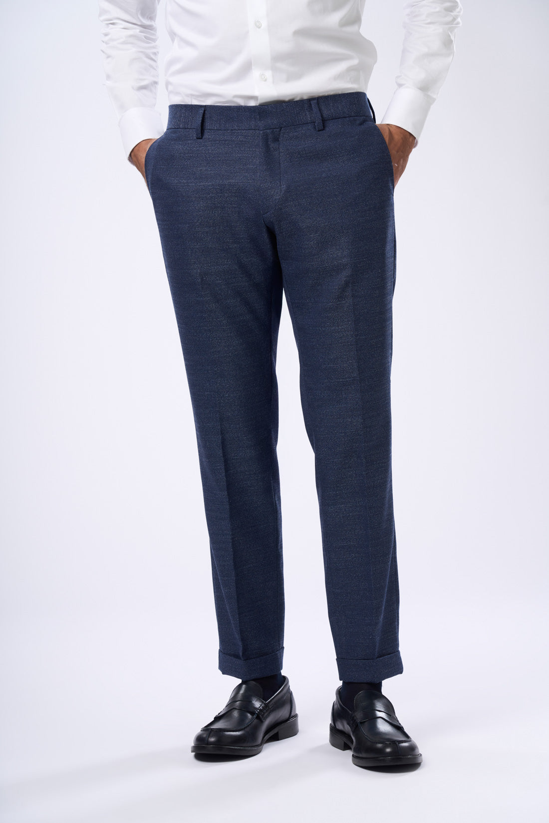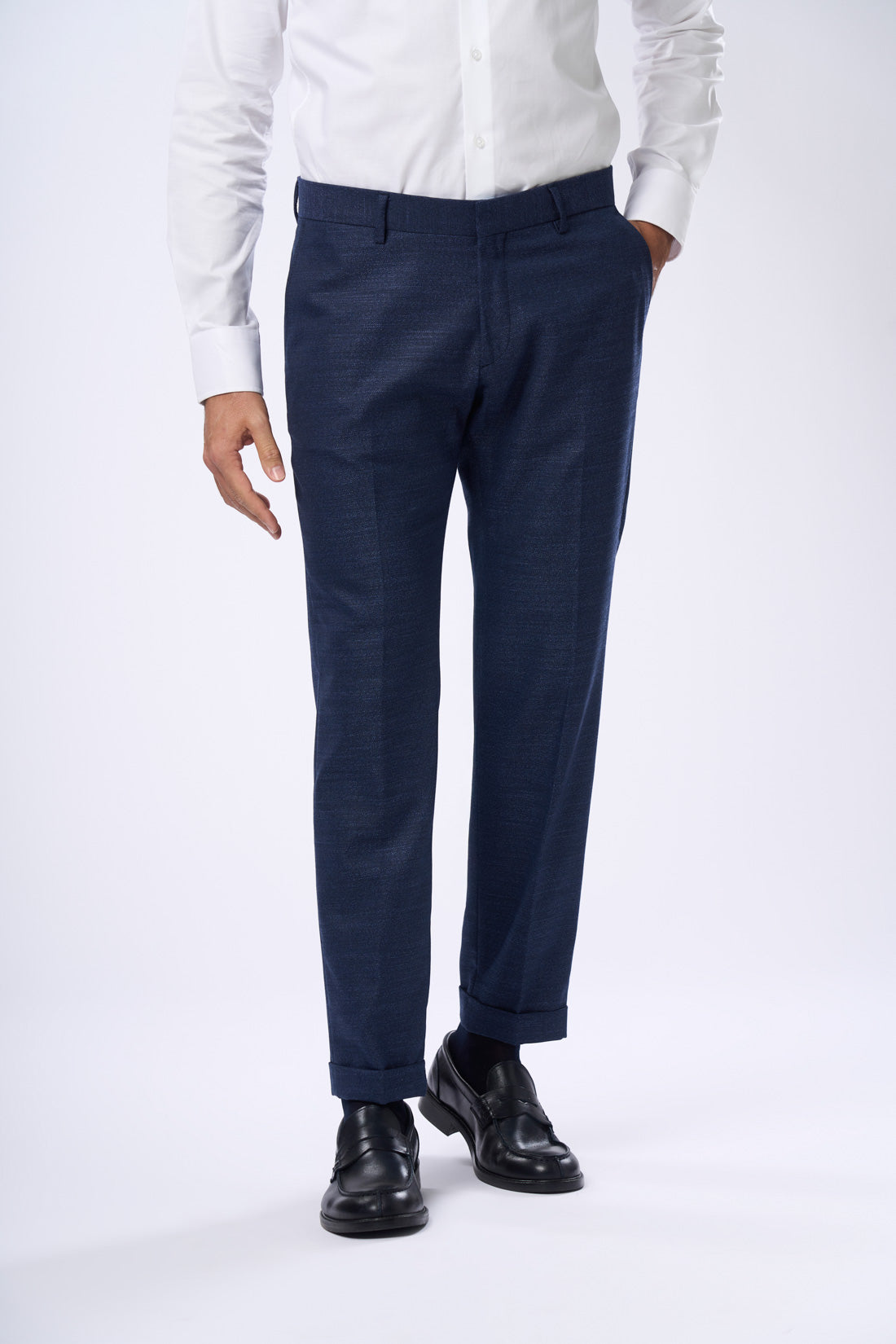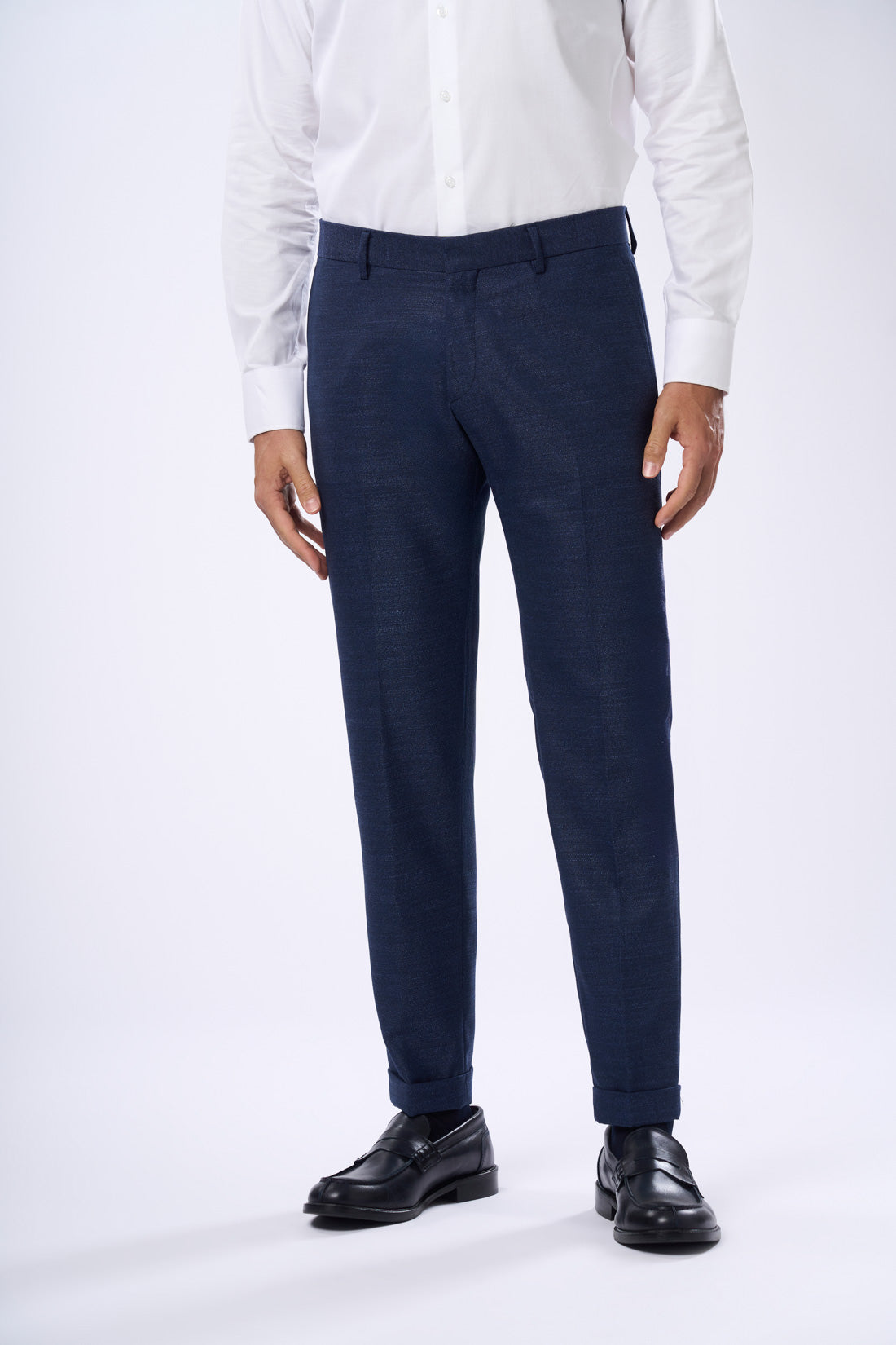 Modello: Pantalone sartoriale dal taglio dritto e affusolato Slim Fit.