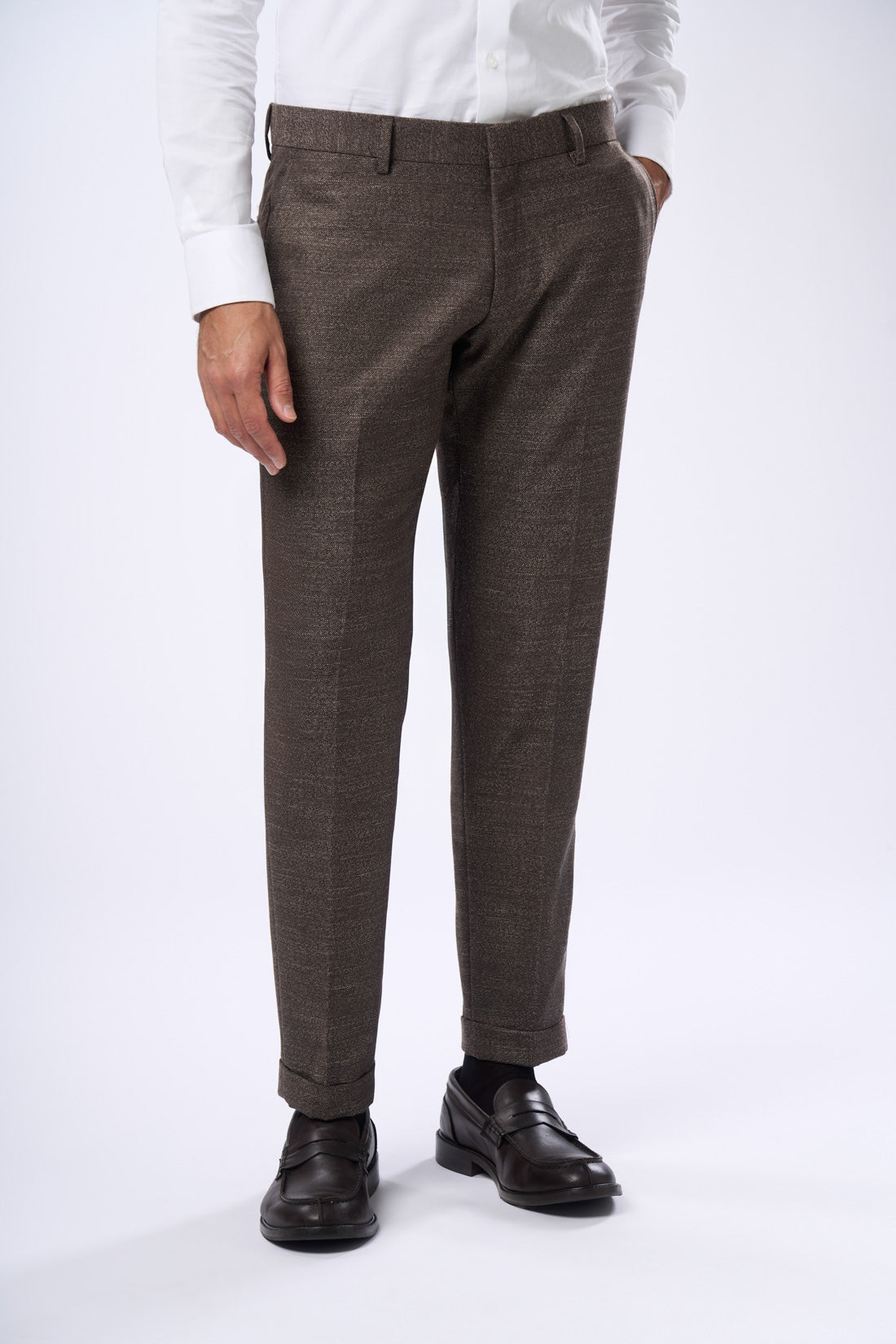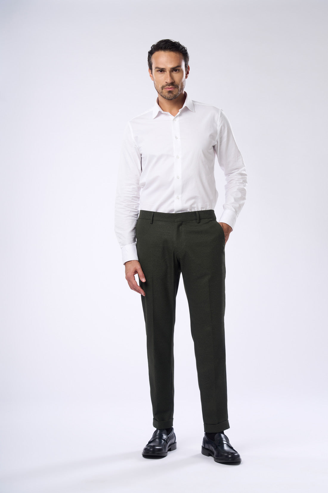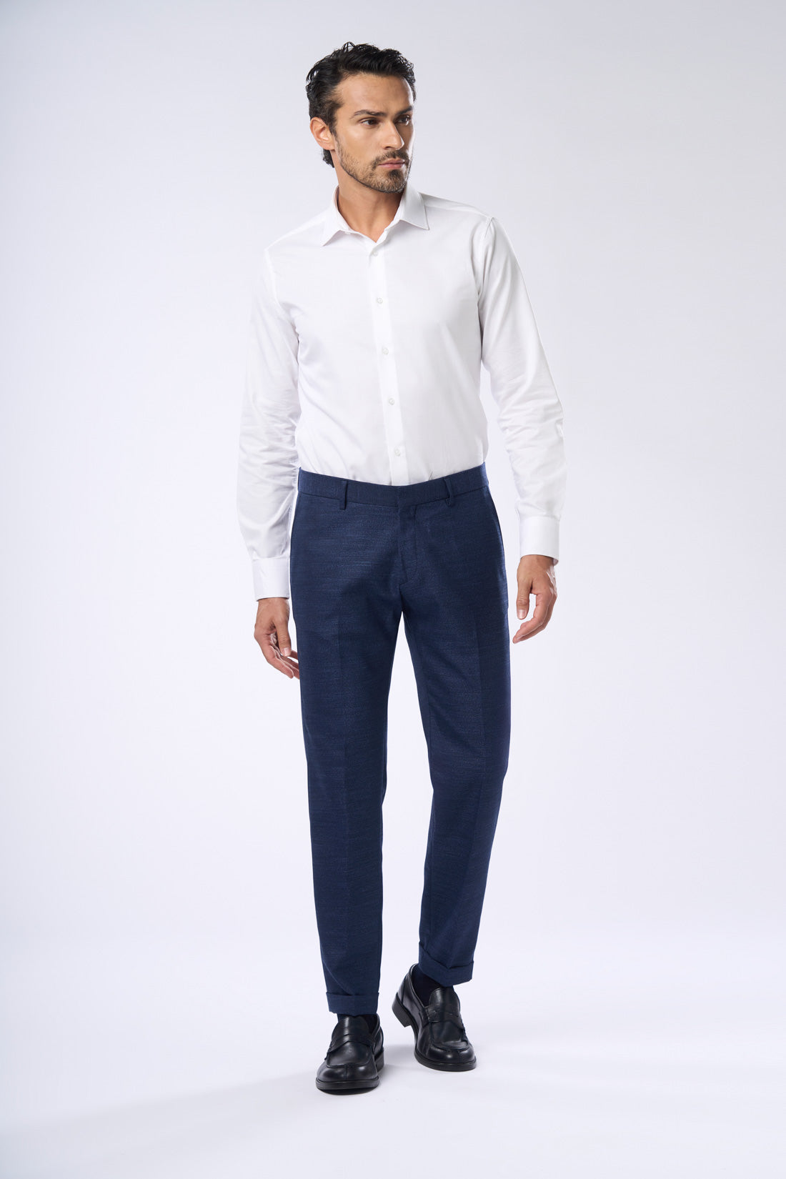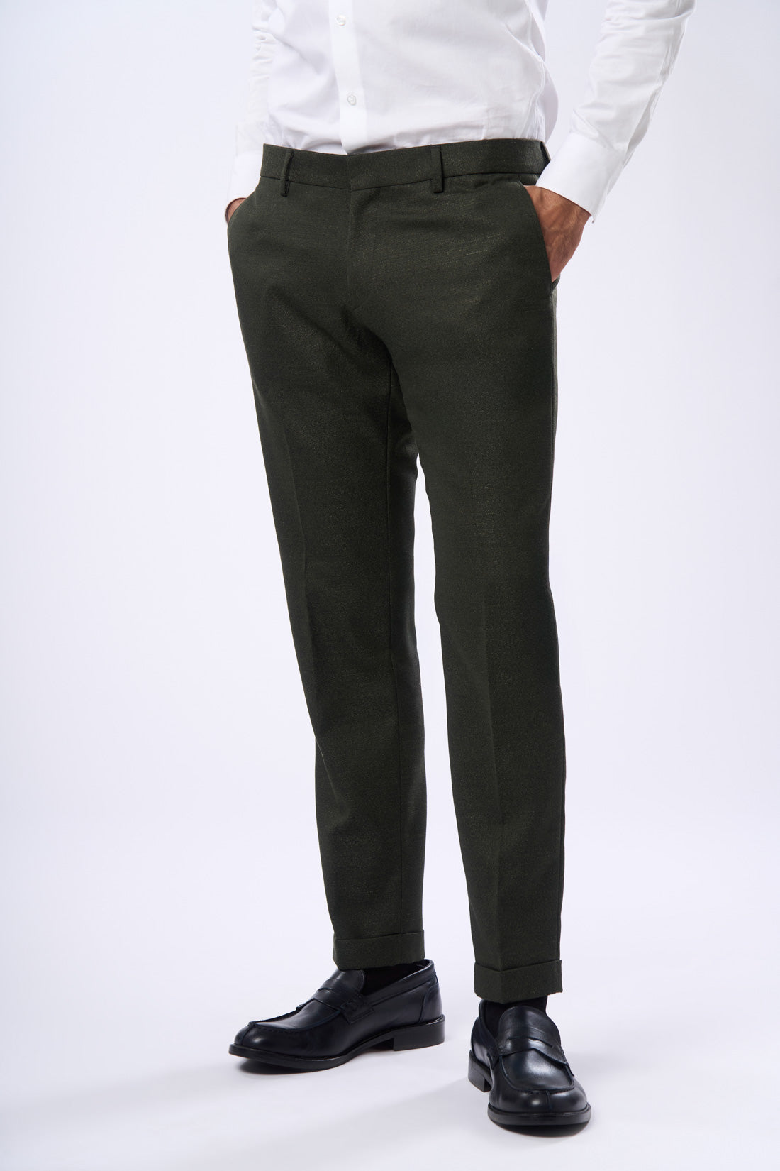 Modello: Pantalone sartoriale dal taglio dritto e affusolato Slim Fit.