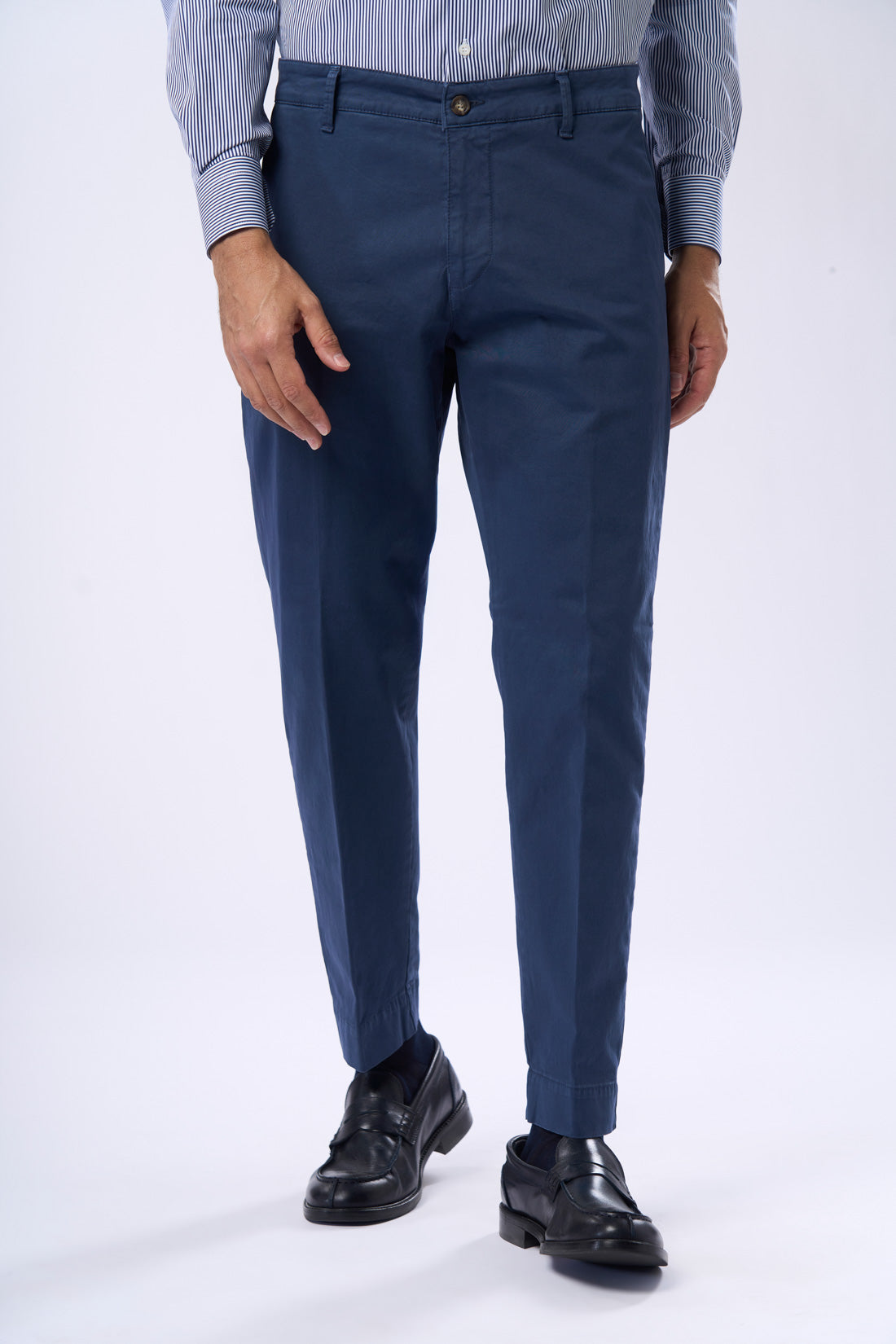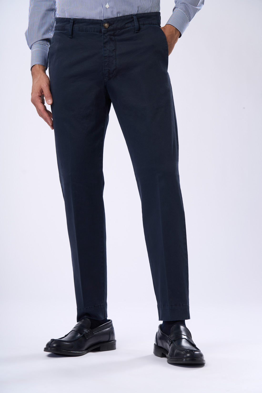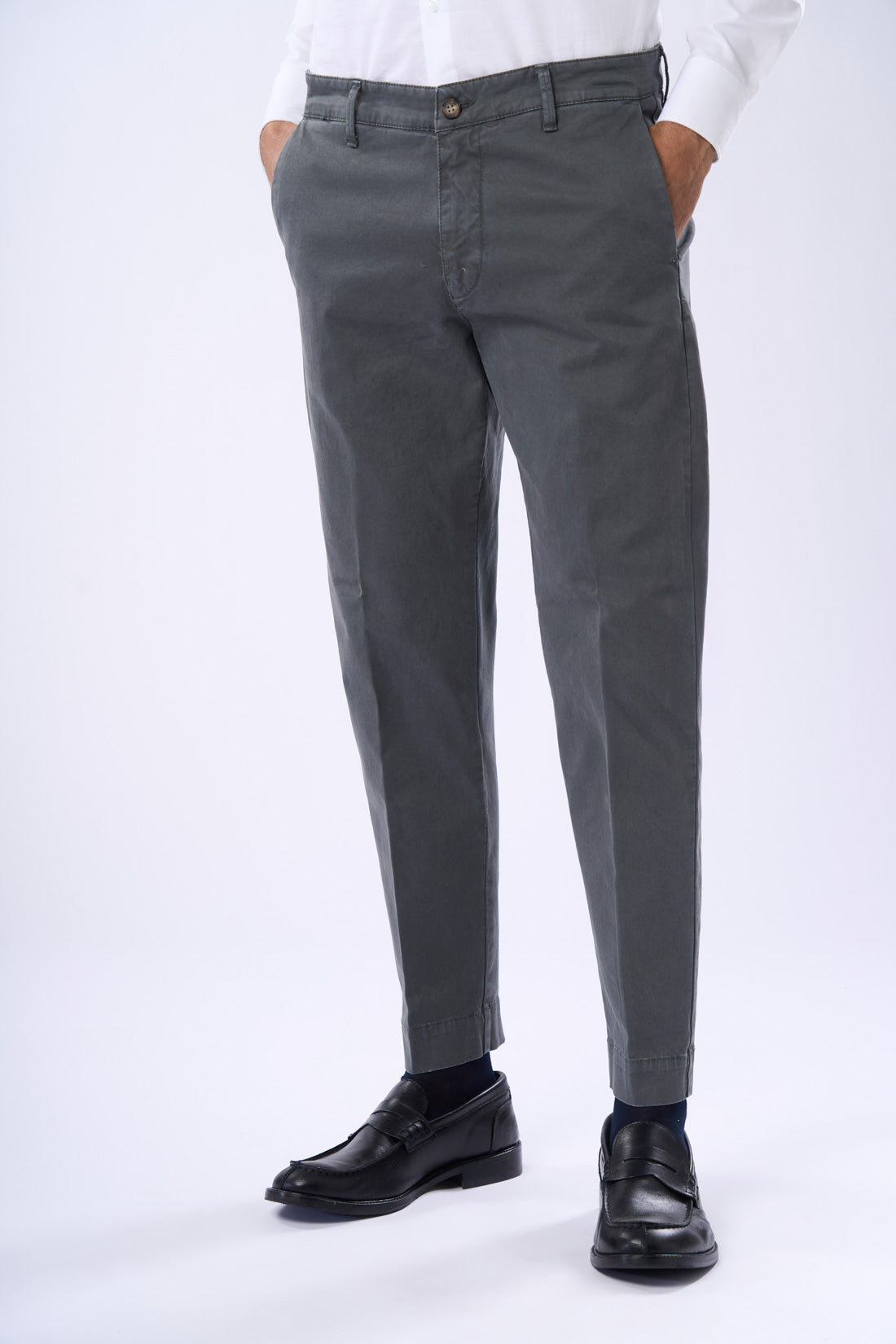 Pantalone con tasca america in raso con piega, è un capo ideale per un look casual e contemporaneo. La vestibilità slim e il tessuto elasticizzato garantiscono grande comfort e libertà di movimento, mentre il risvolto sul fondo conferisce un tocco di originalità e personalità al capo. Il capo è disponibile in vari colori della collezione e presenta una chiusura a zip e bottone. Le tasche frontali sono diagonali, mentre quelle posteriori sono a filetto con bottone di chiusura. La particolarità di questo pantalone è il suo stile casual e informale, perfetto per chi cerca un capo versatile e alla moda.
