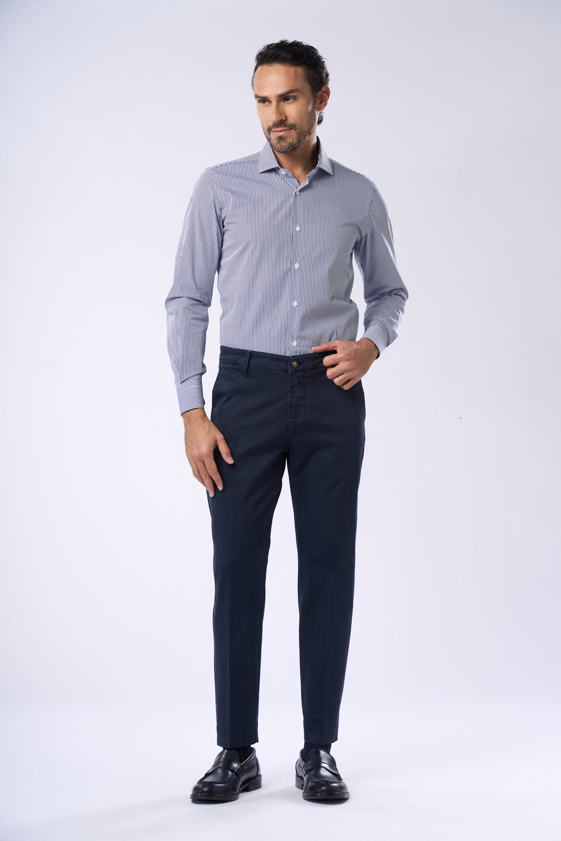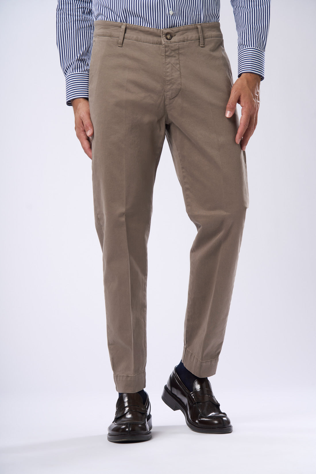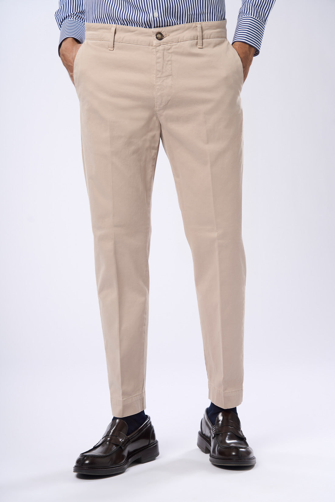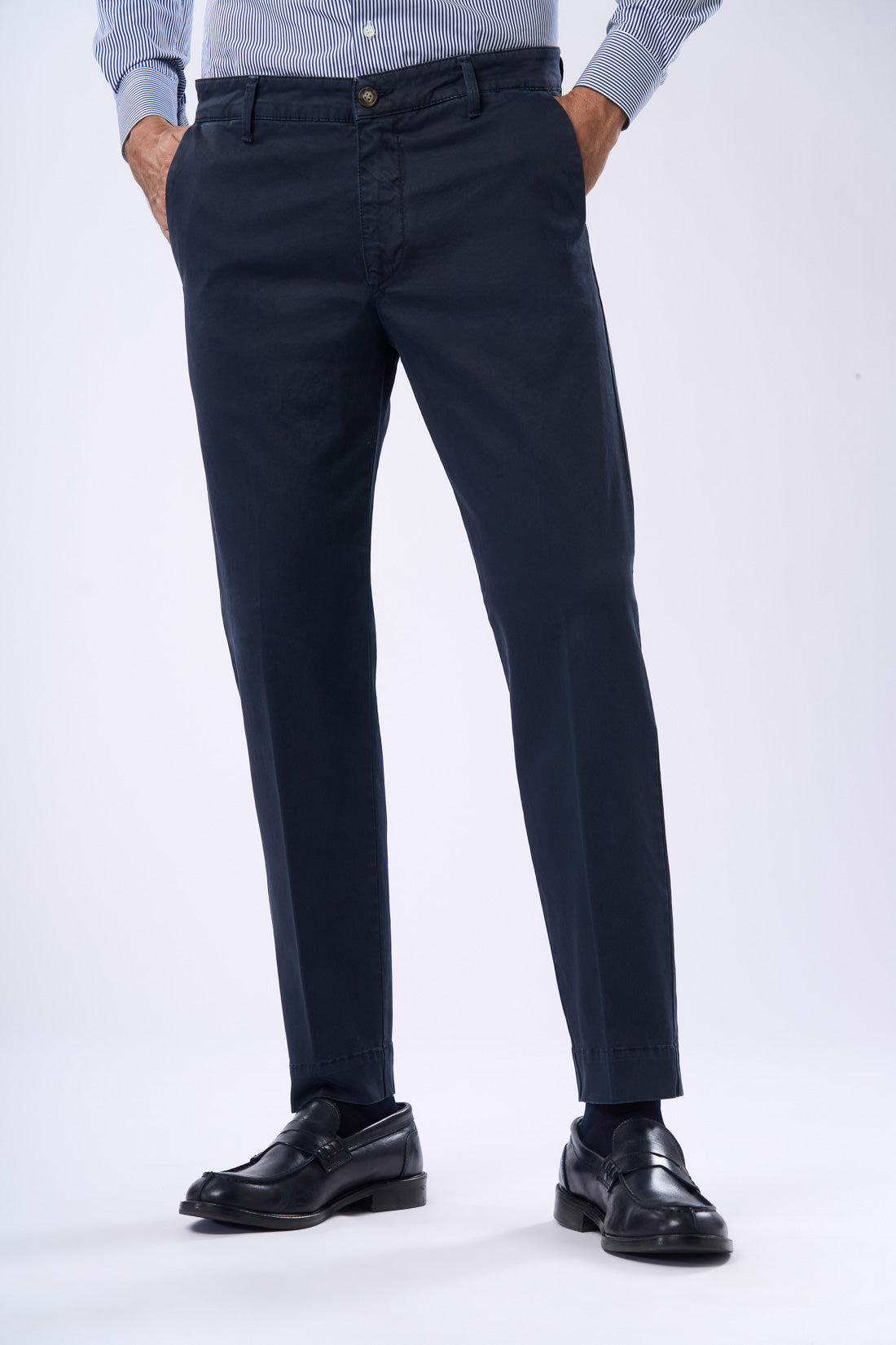 Pantalone con tasca america in raso con piega, è un capo ideale per un look casual e contemporaneo. La vestibilità slim e il tessuto elasticizzato garantiscono grande comfort e libertà di movimento, mentre il risvolto sul fondo conferisce un tocco di originalità e personalità al capo. Il capo è disponibile in vari colori della collezione e presenta una chiusura a zip e bottone. Le tasche frontali sono diagonali, mentre quelle posteriori sono a filetto con bottone di chiusura. La particolarità di questo pantalone è il suo stile casual e informale, perfetto per chi cerca un capo versatile e alla moda.