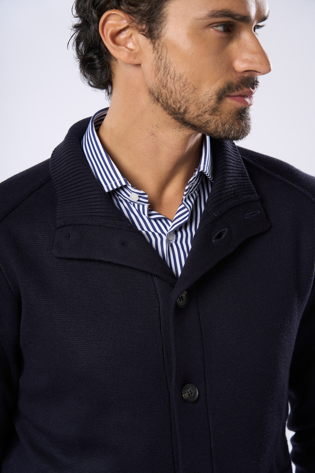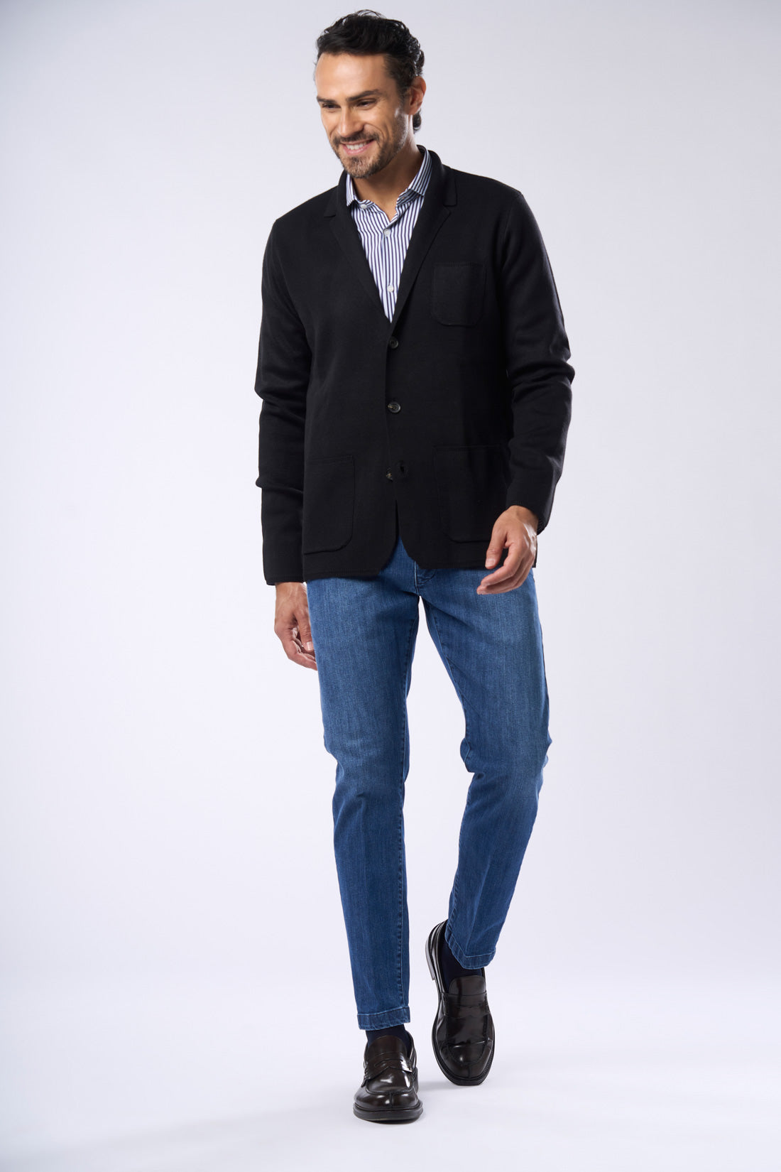 Eleva il tuo stile con il Cardigan Blazer in maglia, il capo perfetto che unisce l'eleganza di una giacca alla morbidezza e al comfort di un cardigan. Ideale per l'uomo che cerca un look raffinato ma versatile, questo blazer in maglia è un must-have per la stagione più fredda.