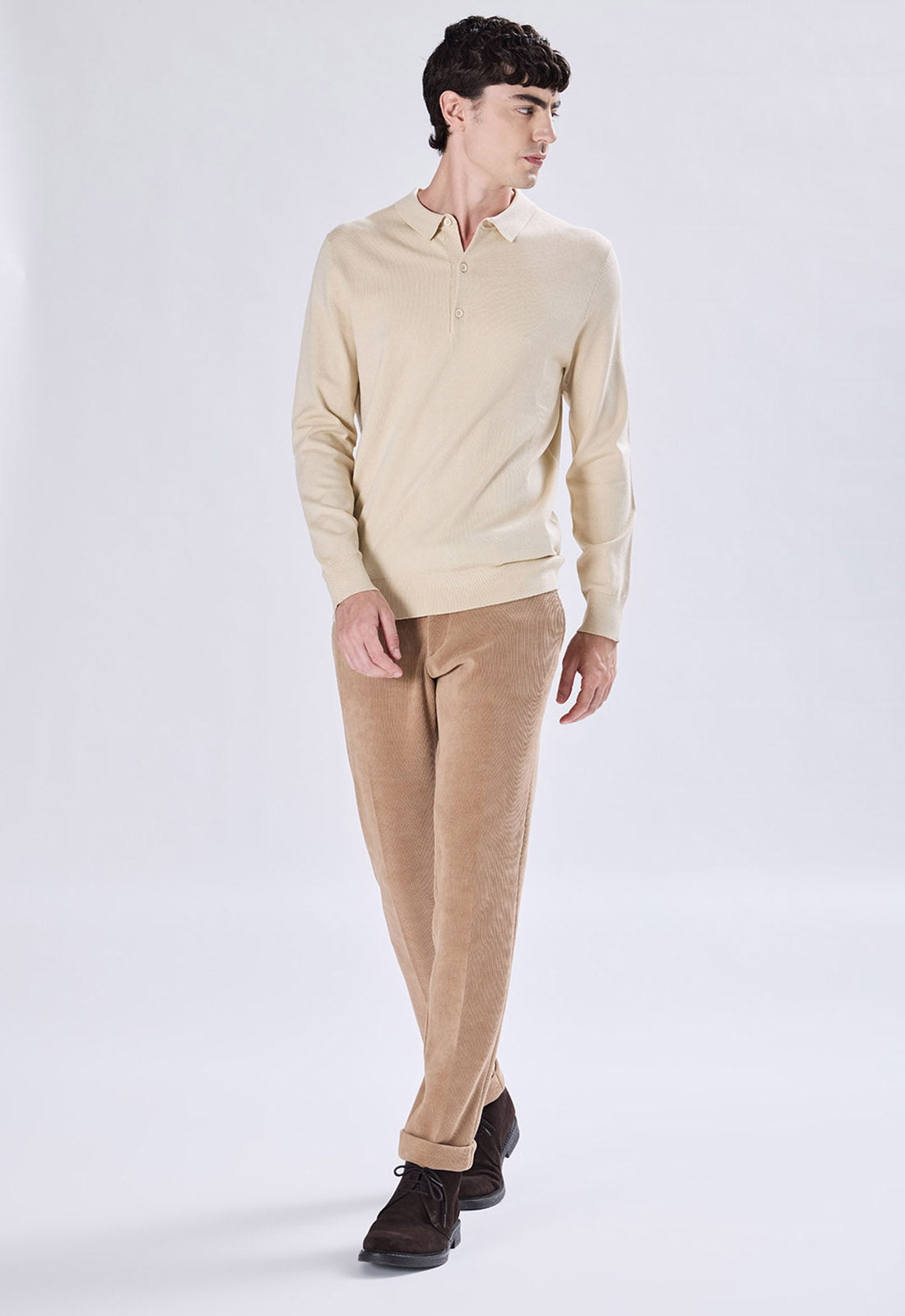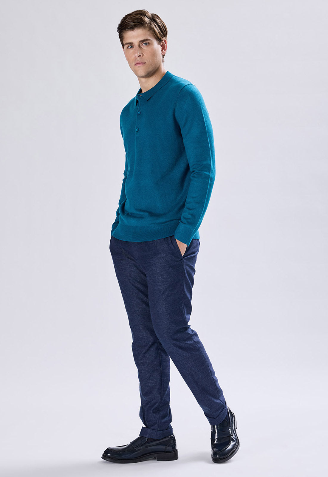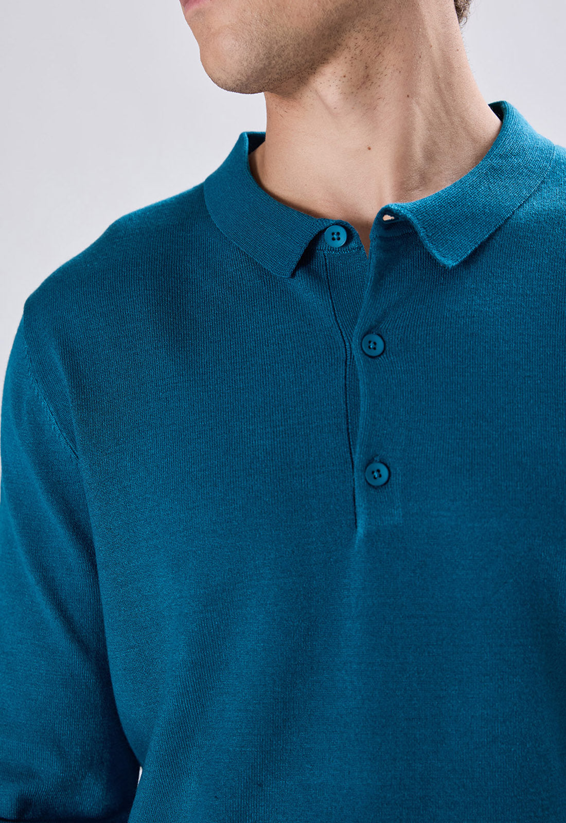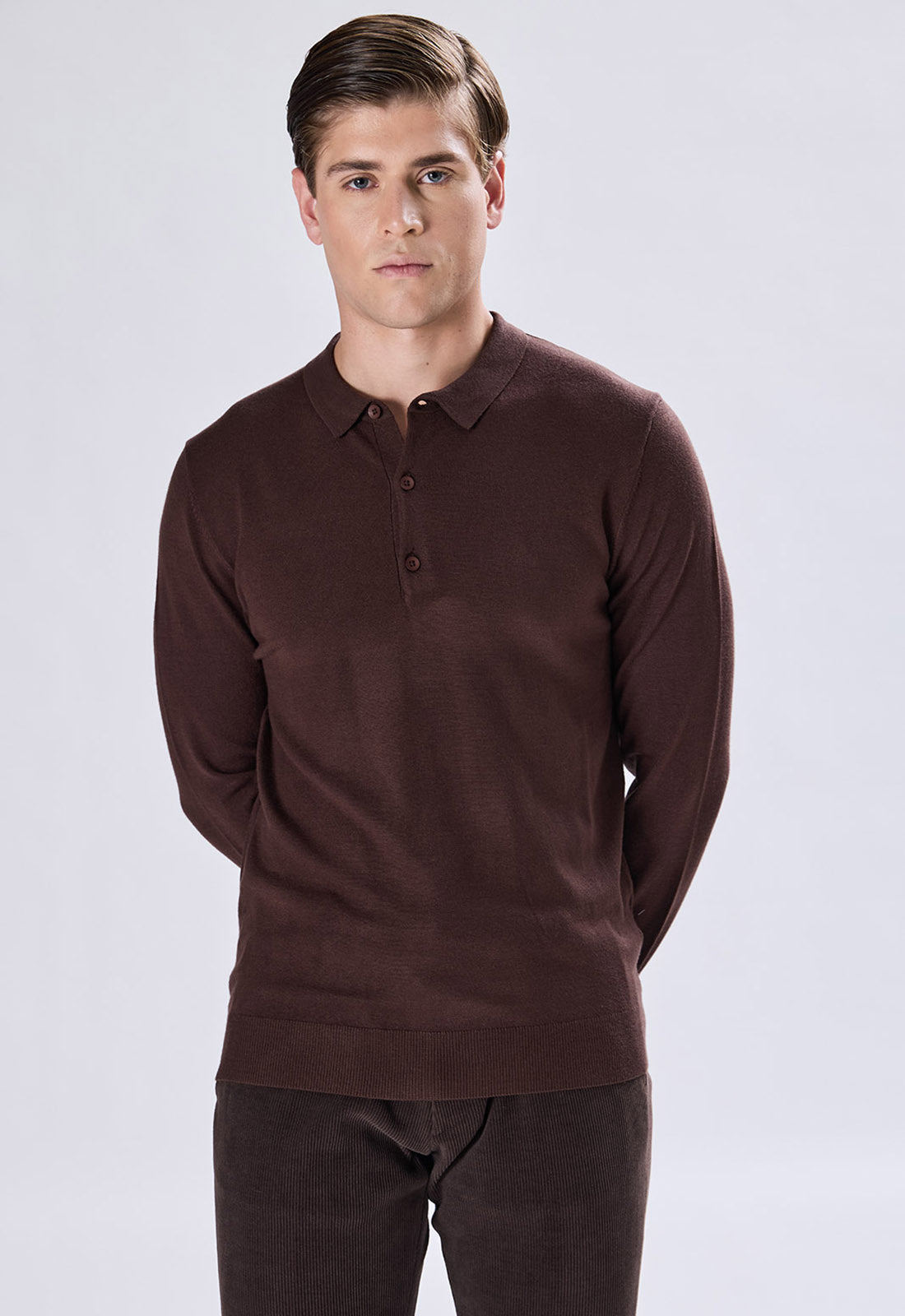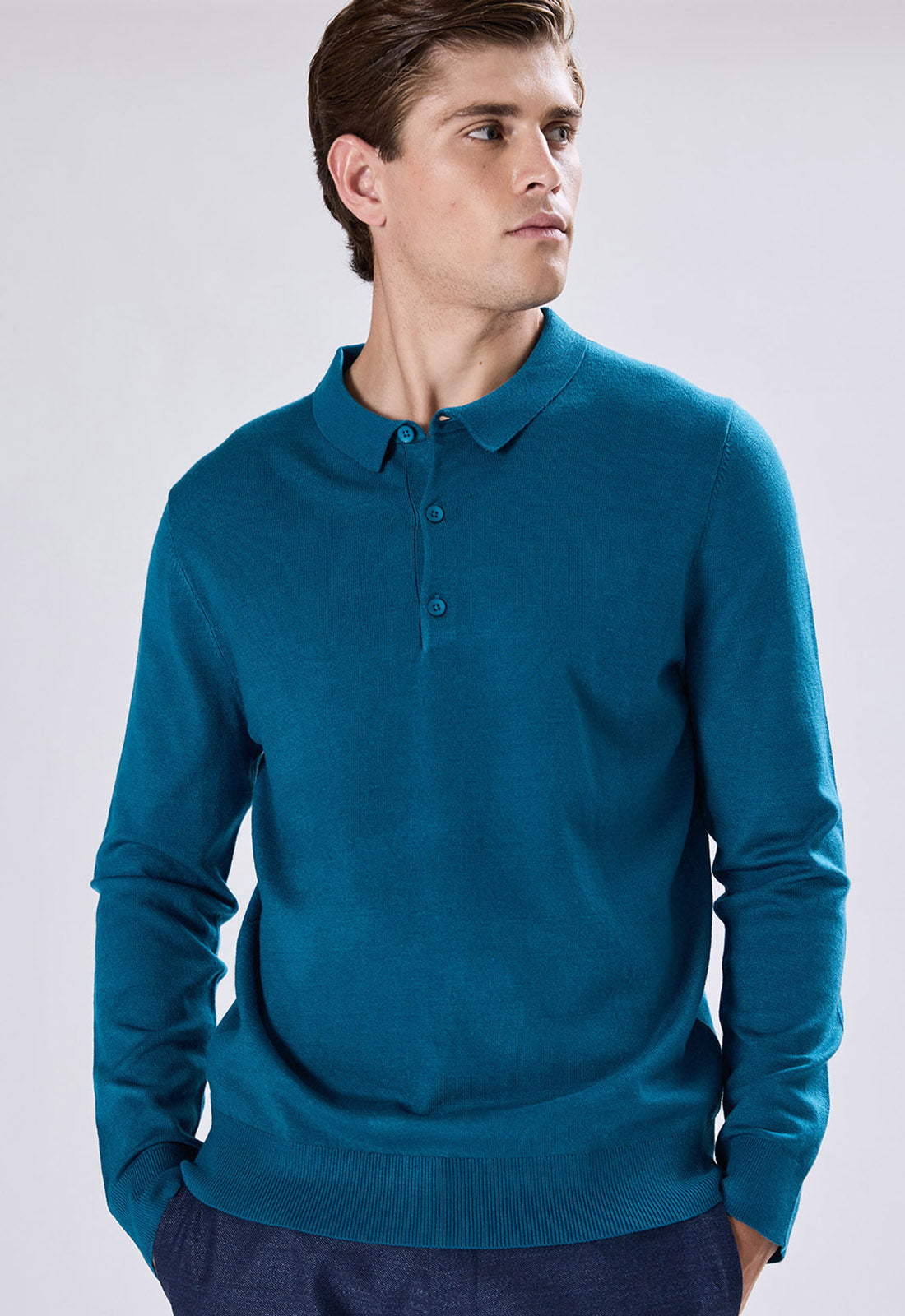 The long-sleeved polo shirt is the perfect piece for a sophisticated and comfortable look. Carefully crafted from high-quality materials, this sweater will envelop you in softness. The three-button placket, turn-down collar, and ribbed cuffs and hem add a touch of elegance to its timeless design. The sweater is available in a selection of colors to suit every style and occasion. Made from a blend of viscose, acrylic, and polyamide, this sweater feels soft and lightweight against the skin.