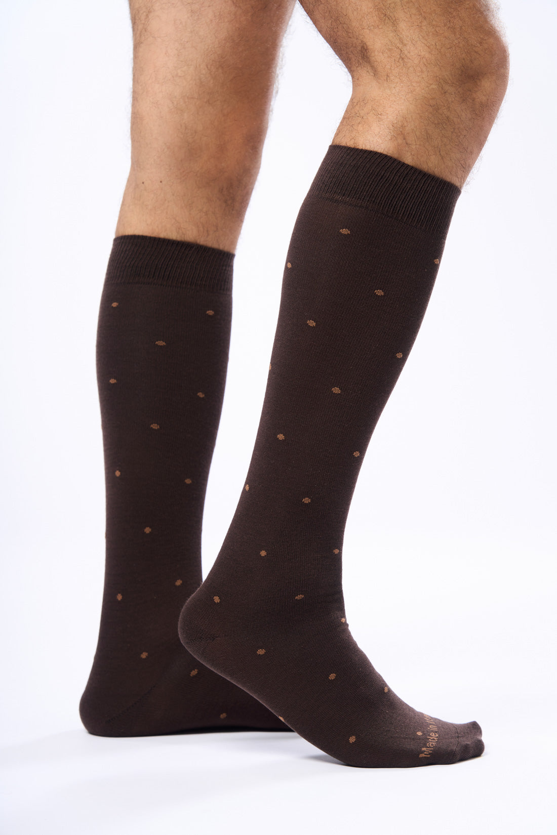Add a touch of vivacity to your feet with these men's cotton socks featuring a polka dot texture. A classic and timeless design, polka dots add a playful and elegant touch to any outfit.