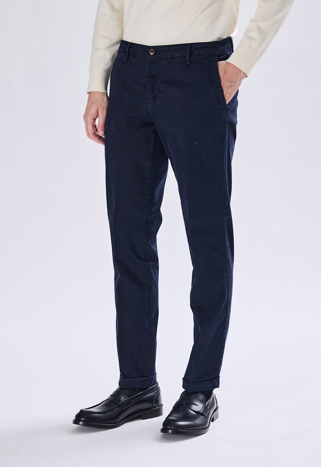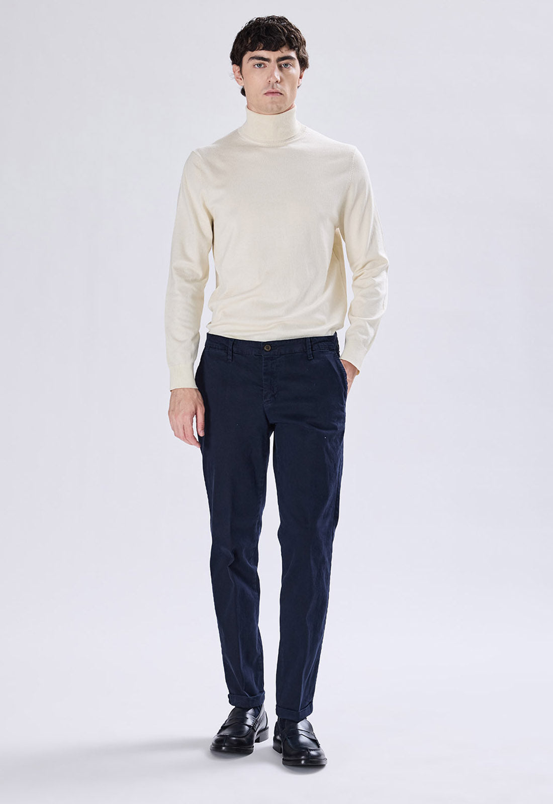 These trousers are the perfect combination of the elegance of tailored trousers and the comfort of chinos. Crafted from a high-quality cotton fabric (with a touch of elastane for comfort), they guarantee an excellent fit all day long.
