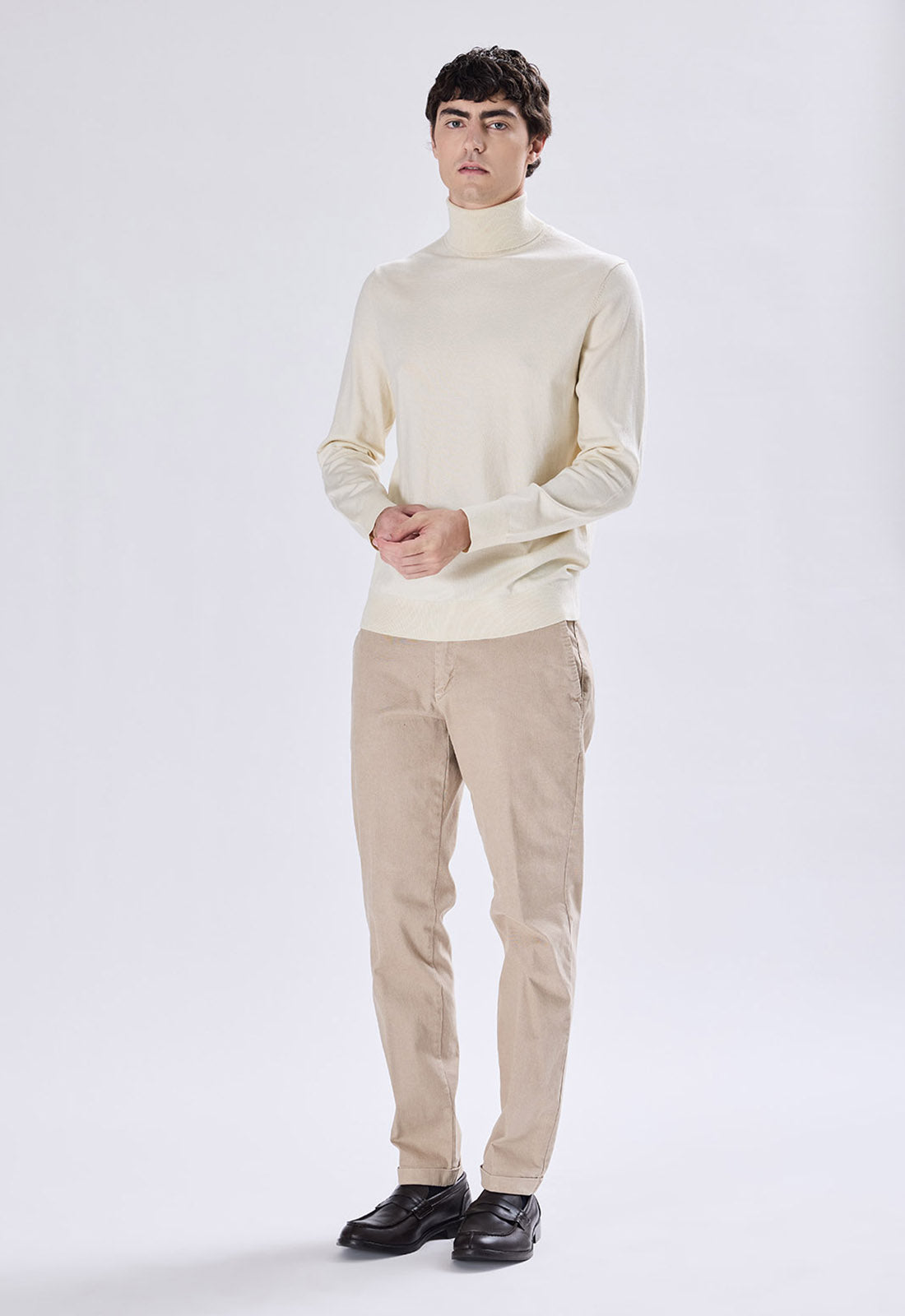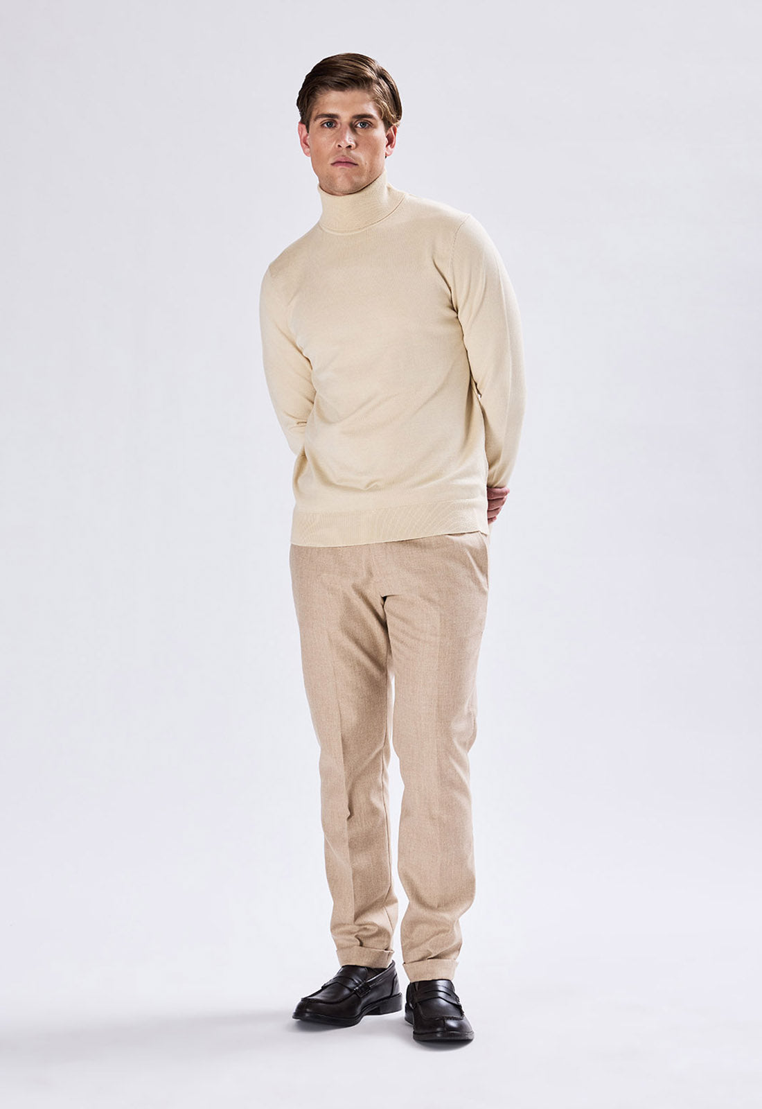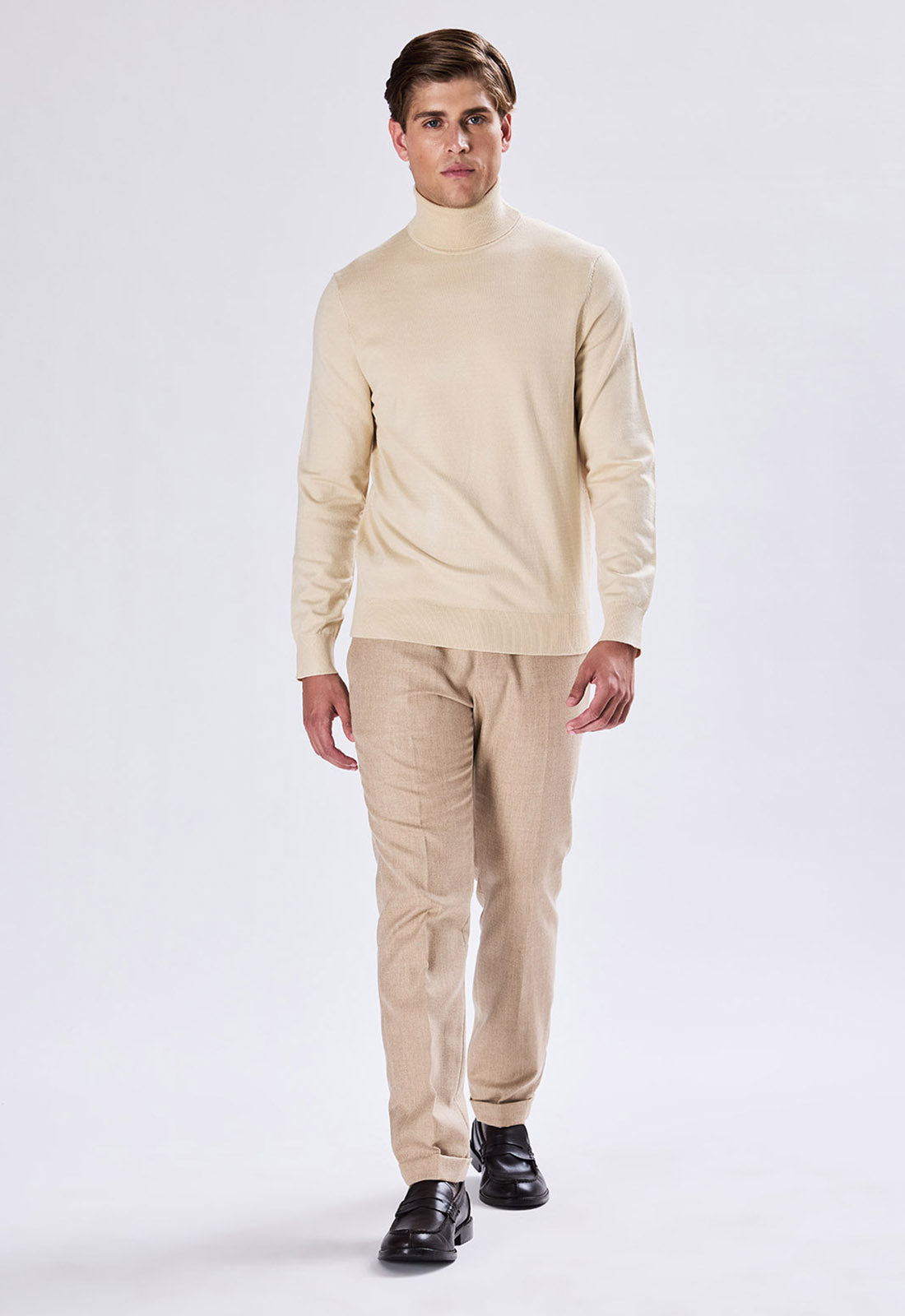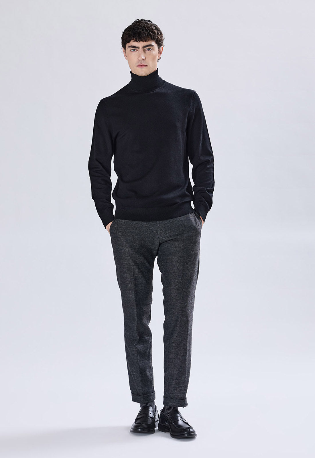 Dolcevita Basic conferisce confort ed eleganza allo stesso tempo. Ogni dettaglio di questo capo è stato realizzato con la massima precisione, utilizzando materiali di qualità. La sua composizione garantisce un comfort avvolgente, mentre le finiture del collo, del fondo e dei polsini presentano una trama a costine finemente lavorata, aggiungendo un tocco di eleganza senza tempo al suo design.