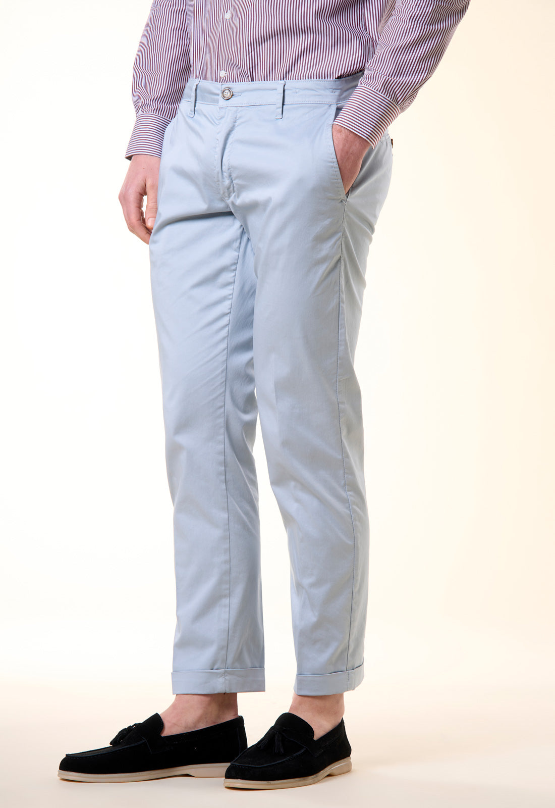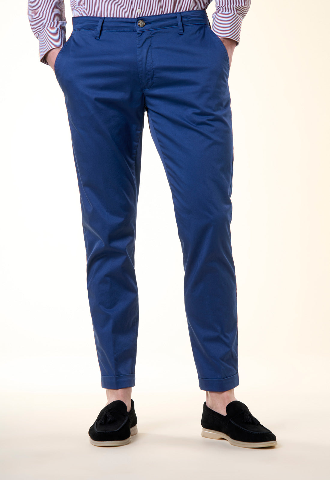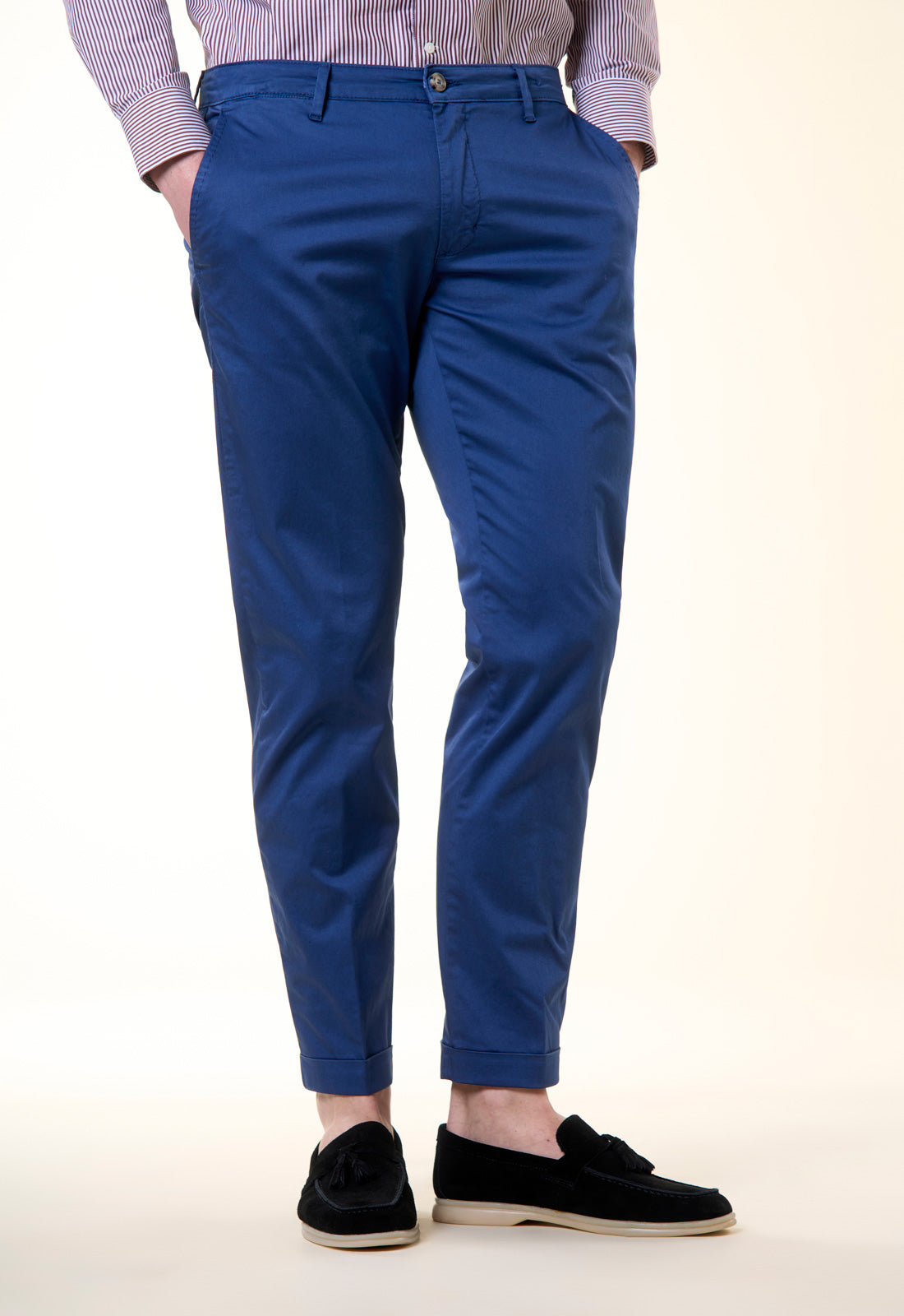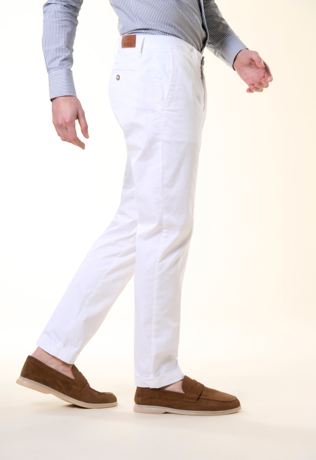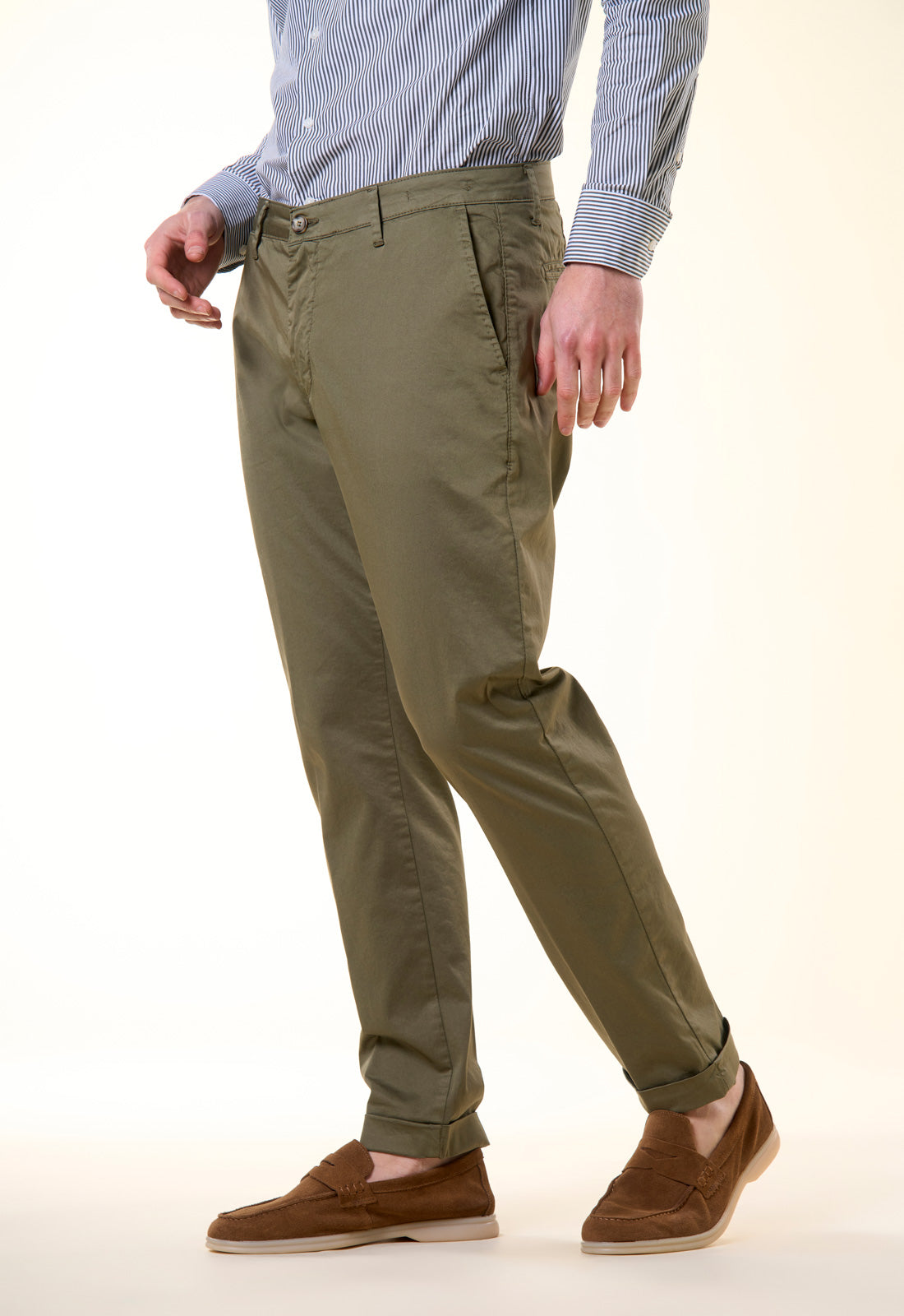 Il pilastro indispensabile di ogni guardaroba maschile: il pantalone chino nella classica tonalità sabbia. Questo modello coniuga una silhouette pulita e formale con la praticità necessaria per affrontare la giornata, dall'ufficio al tempo libero. Realizzato in un twill di cotone leggermente elasticizzato, garantisce un comfort ottimale e una vestibilità che accompagna i movimenti senza rinunciare a una linea definita e sartoriale.