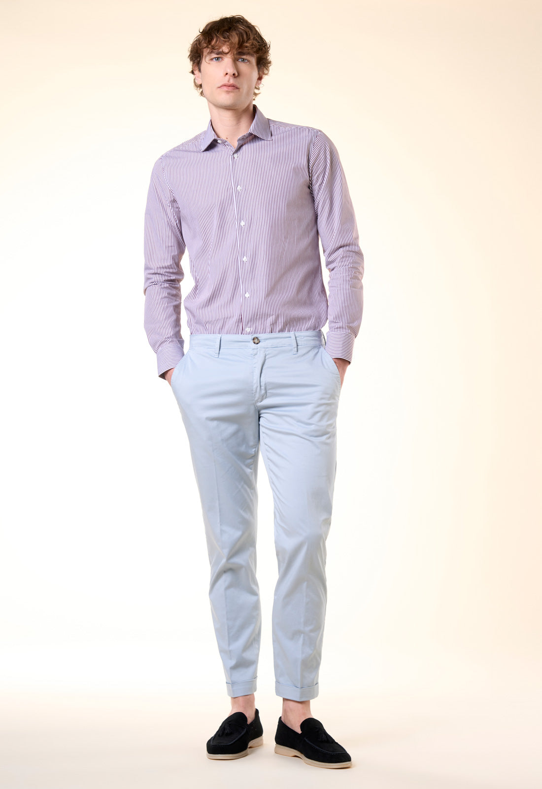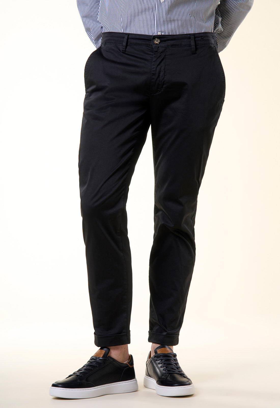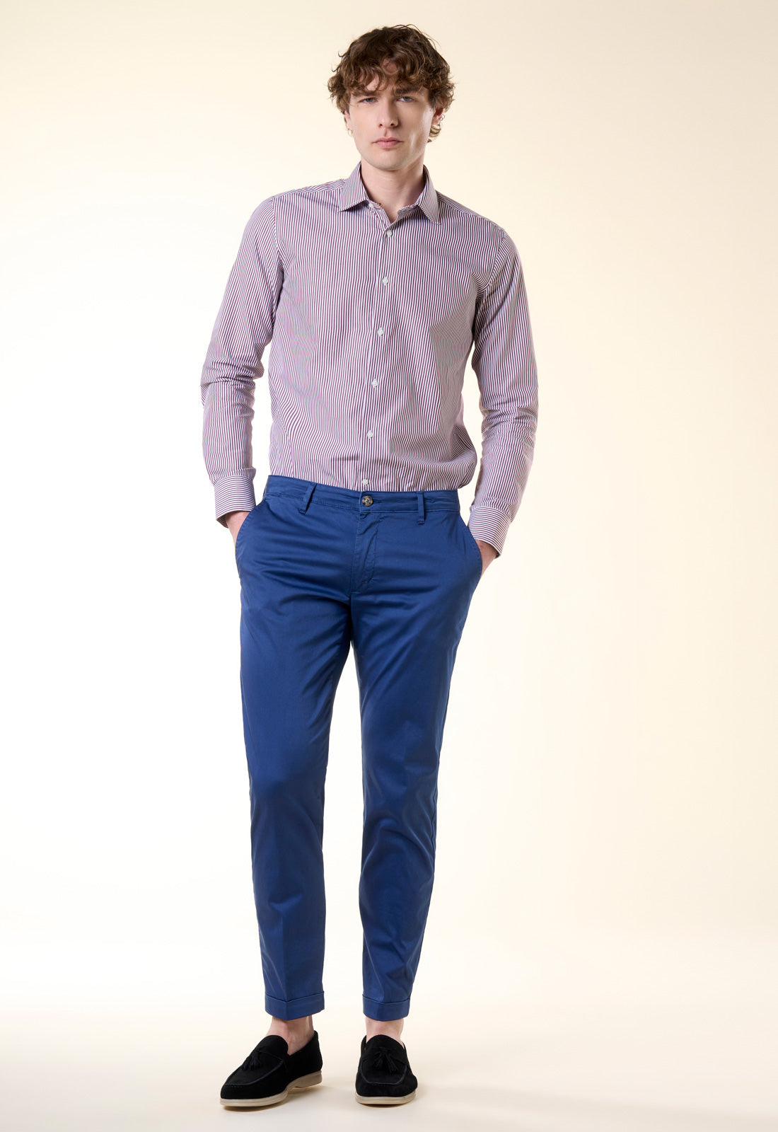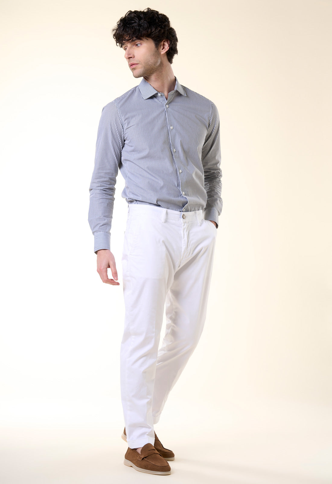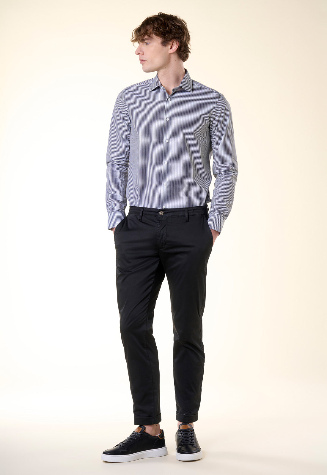 Il pilastro indispensabile di ogni guardaroba maschile: il pantalone chino nella classica tonalità sabbia. Questo modello coniuga una silhouette pulita e formale con la praticità necessaria per affrontare la giornata, dall'ufficio al tempo libero. Realizzato in un twill di cotone leggermente elasticizzato, garantisce un comfort ottimale e una vestibilità che accompagna i movimenti senza rinunciare a una linea definita e sartoriale.